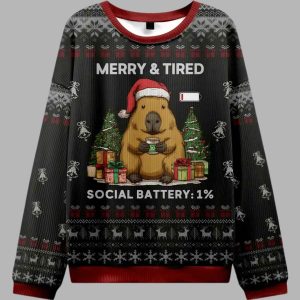 Merry And Tired Social Battery 1% Ugly Christmas Sweater