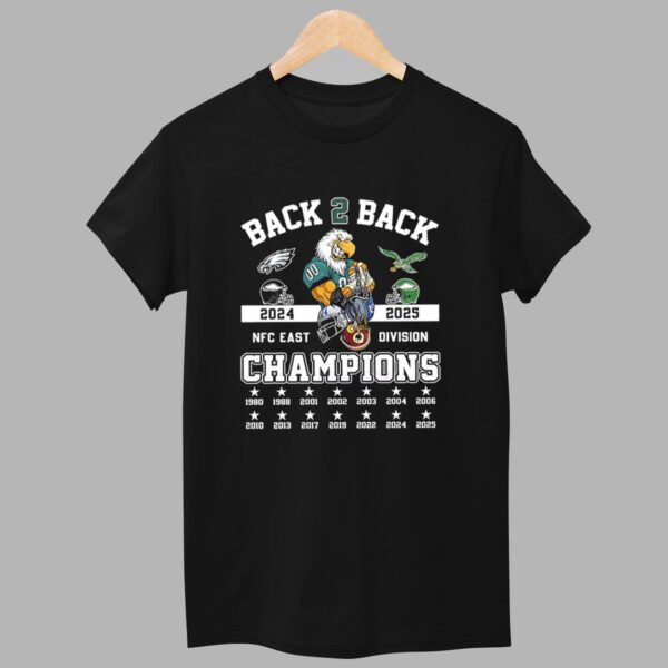 Commemorate a historic era of regional dominance and showcase your pride with the bold 2025 Eagles NFC Back To Back East Champions Shirt.