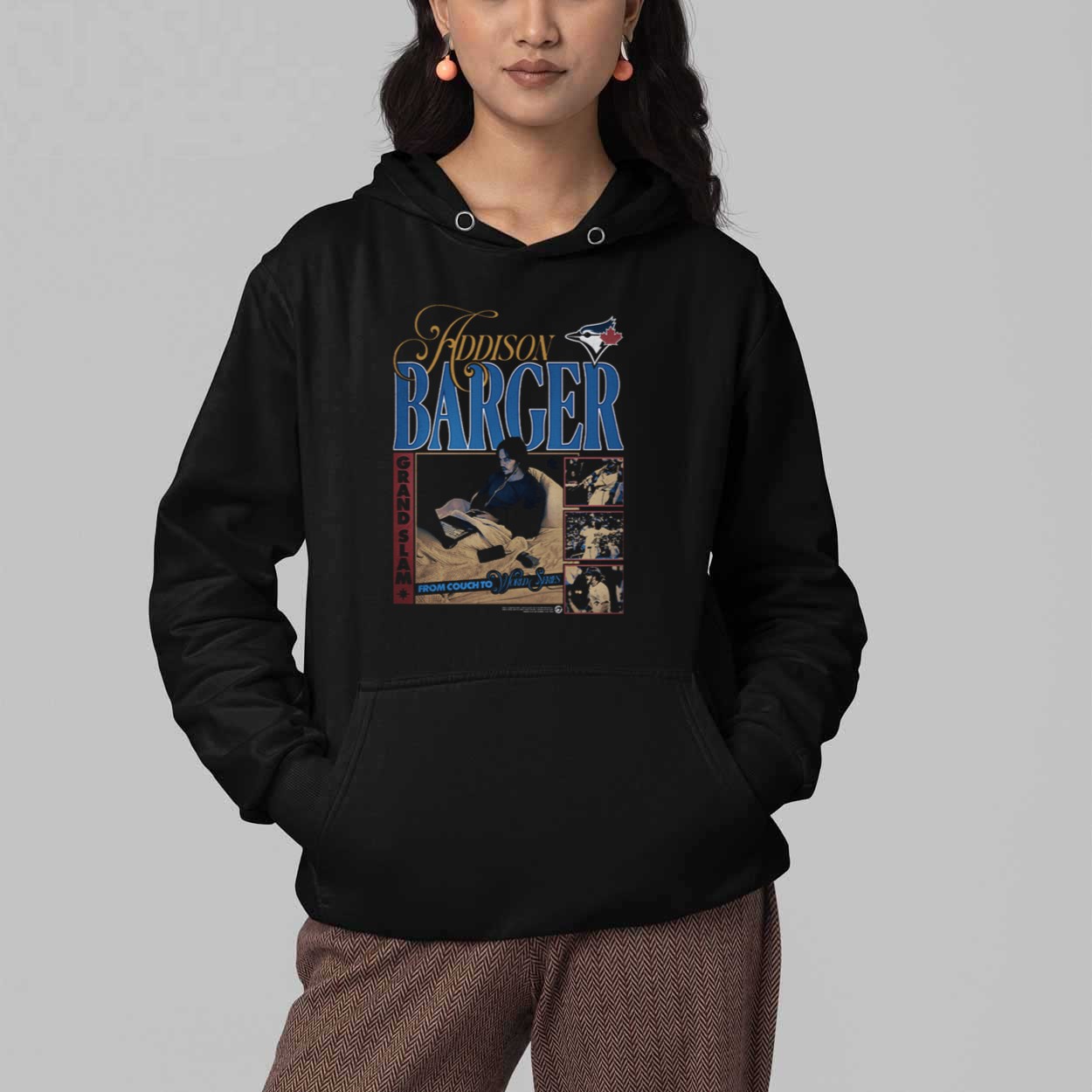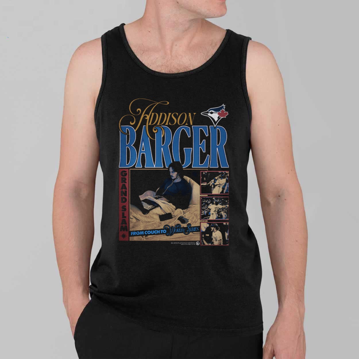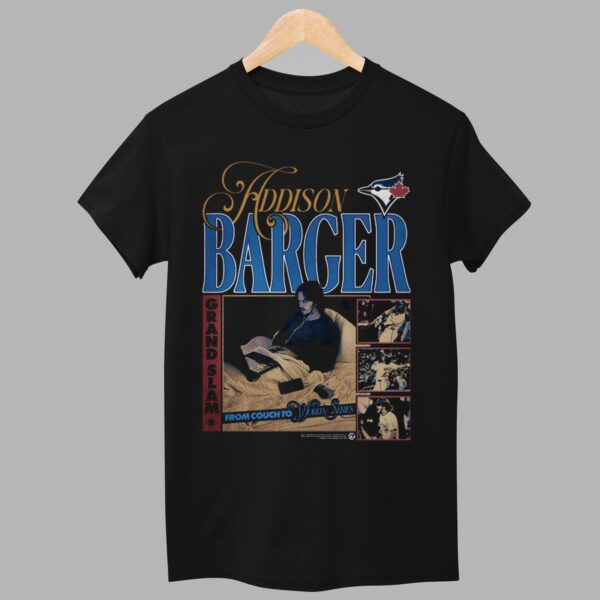 Honor the journey and back your favorite infielder with a design that captures the true heart of the game. Secure your 2026 Blue Jays Addison Barger Couch T-Shirt Giveaway today and wear a story of victory!