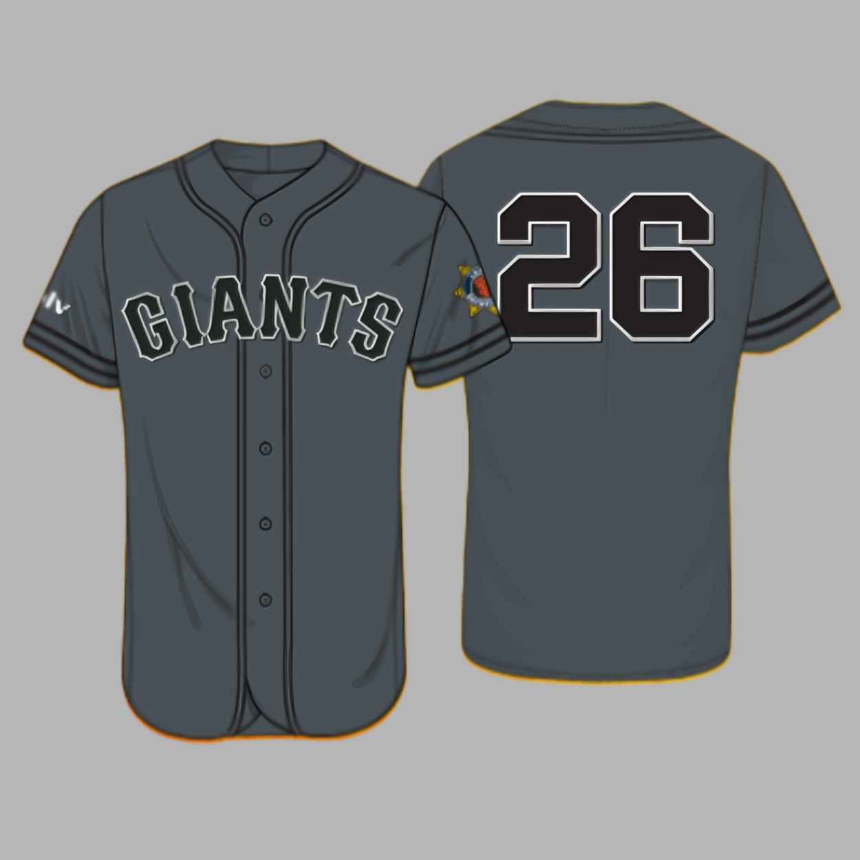 The 2026 Giants Law Enforcement Appreciation Night Jersey Giveaway represents a powerful connection between the spirit of the game and the dedication of law enforcement professionals. Featuring a sleek, charcoal-grey body with professional black and white trim, the design prominently displays the classic “Giants” wordmark across the chest. A specialized shield emblem is featured on the back, symbolizing protection, courage, and the strong bond between the team and the community it serves. This garment is more than just a piece of fan gear; it is a wearable badge of honor that commemorates the 2026 season’s night of recognition and mutual respect.