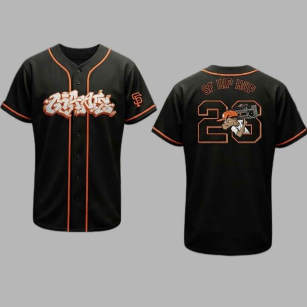 The 2026 Giants National Hip Hop Night Jersey is a striking symbol of artistic rebellion and rhythmic unity. Featuring a sleek black base with bold orange piping, the front is anchored by a stylized “Giants” script rendered in a dynamic, 3D graffiti bubble-letter font. The back pays homage to the golden era of the genre, showcasing a classic boombox-toting character integrated with the number 26 and the “SF HIP HOP” arc. This garment commemorates the 2026 season as a historic bridge between the stadium and the street, honoring the lyricists, DJs, and breakdancers who have shaped the soundtrack of the Bay Area.