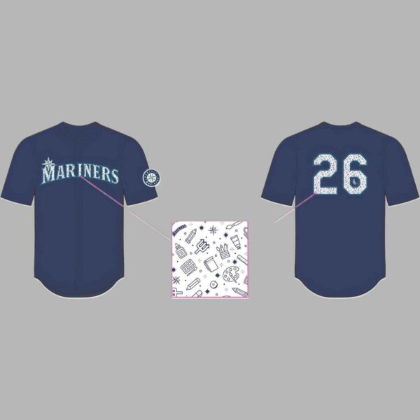 The 2026 Giveaway Mariners Teacher Appreciation Jersey serves as a heartfelt symbol of gratitude for the dedication and hard work of teachers everywhere. Dressed in a classic navy blue, this design is elevated by a unique pattern of classroom-inspired icons—including pencils, notebooks, globes, and lightbulbs—intricately woven into the “26” numbering on the back. It represents the vital role of education in our community, commemorating the 2026 season as a time to recognize the mentors who guide our youth with passion and resilience.