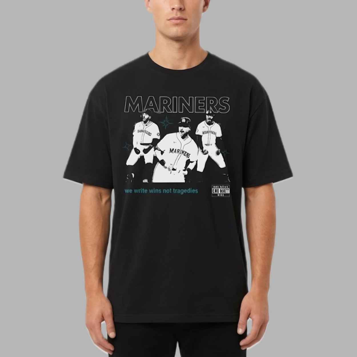 - Front Graphic: Features a bold, high-contrast monochrome trio of star players set against the iconic “MARINERS” typography.