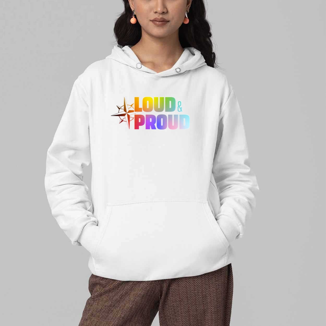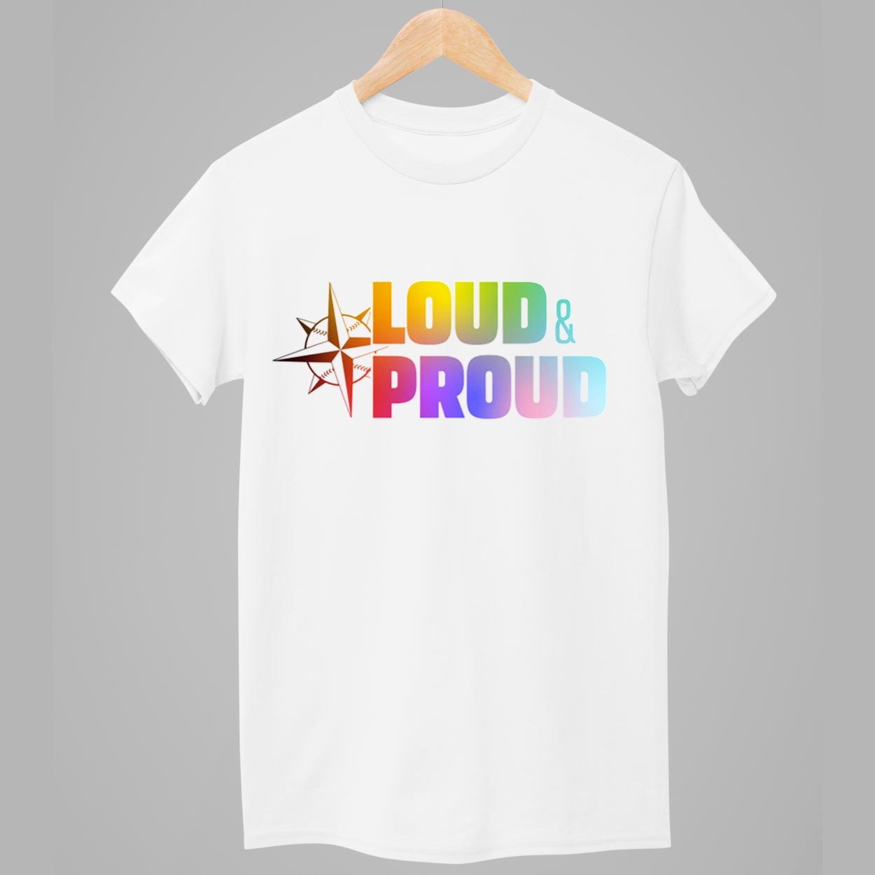 - Primary Message: Features the bold “LOUD & PROUD” slogan prominently centered on the chest.