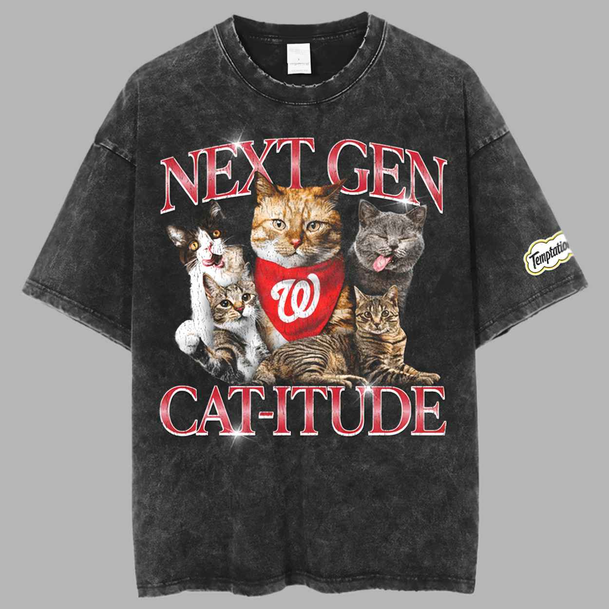 The 2026 Nationals Caturday Shirt Giveaway features a unique, vintage-washed aesthetic that perfectly captures the playful energy of “Caturday” at the ballpark. The design showcases a group of charming cats, including a standout ginger tabby wearing a team-branded red bandana, alongside the bold text “NEXT GEN CAT-ITUDE”. This shirt symbolizes the fun, community-driven side of the sport, offering a meaningful way for fans to showcase their dual passion for their team and their pets in a single, eye-catching design.