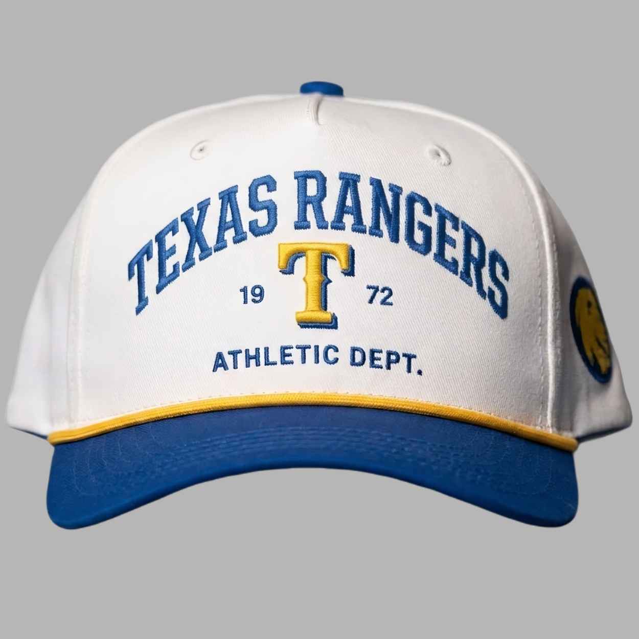 The 2026 Rangers East Texas A&M Hat Giveaway is a meaningful symbol of regional partnership and collegiate community spirit. Featuring a clean white crown with a bold royal blue brim and matching gold rope detail, the design is anchored by the “Texas Rangers Athletic Dept.” arc surrounding a classic gold and blue “T” logo flanked by the year 1972. This headwear commemorates the 2026 season as a historic bridge between university achievement and professional sportsmanship, honoring the students, alumni, and faculty who bring their unique energy to the heart of the ballpark.