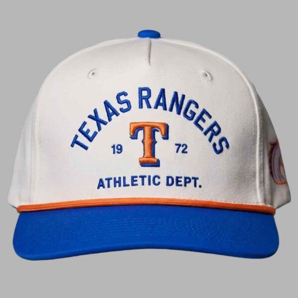 The 2026 Rangers University of Texas Arlington Hat Giveaway is a meaningful symbol of regional partnership and collegiate community spirit. Featuring a clean white crown with a bold royal blue brim and a striking orange rope detail, the design is anchored by the “Texas Rangers Athletic Dept.” arc surrounding a classic orange and blue “T” logo flanked by the year 1972. This headwear commemorates the 2026 season as a historic bridge between university achievement and professional sportsmanship, honoring the students, alumni, and faculty who bring their unique energy and Maverick spirit to the heart of the ballpark.