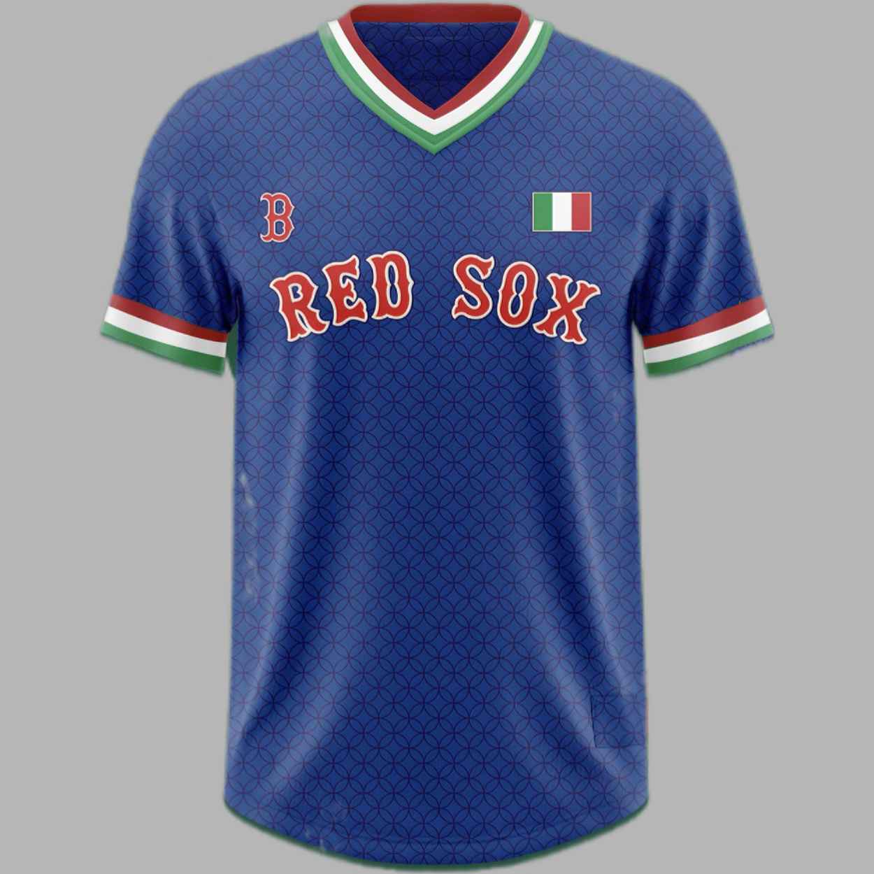 The 2026 Red Sox Italian Celebration Jersey Giveaway features a sophisticated navy blue base adorned with a classic geometric pattern, accented by the unmistakable green, white, and red of the Italian flag. This design represents a deep respect for roots and the shared passion that bridges two worlds, creating a symbol of pride that resonates far beyond the ballpark. It is a celebration of family, tradition, and the spirit of excellence that defines both Italian culture and the legendary history of the team.