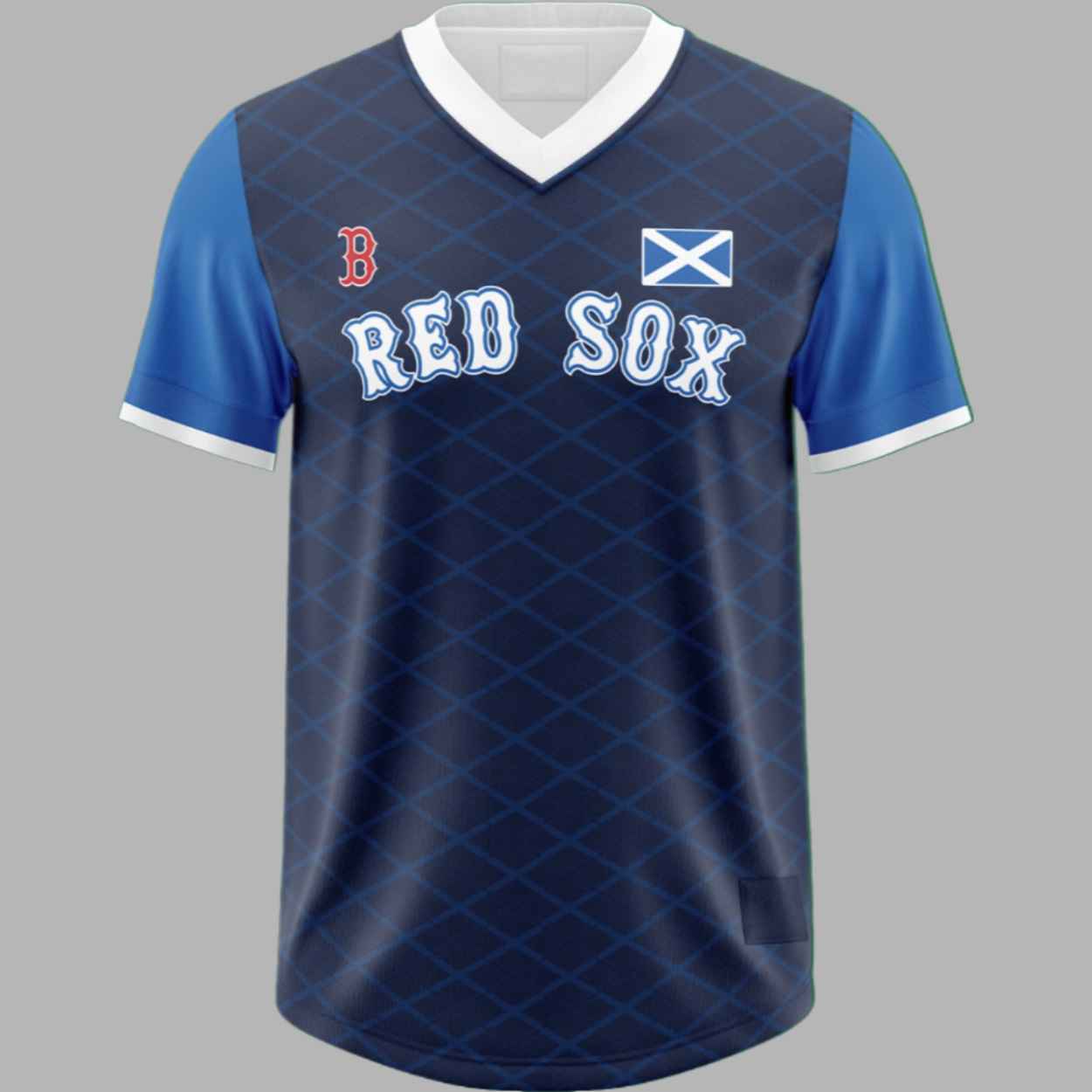 This jersey features a deep navy body adorned with a subtle, tonal diamond lattice pattern that draws inspiration from traditional Scottish tartans and highland craftsmanship. The design is accented with vibrant blue sleeves and a crisp white V-neck collar, perfectly reflecting the colors of the St. Andrew’s Cross, which is proudly displayed on the chest. By blending the team’s historic lettering with these iconic Scottish motifs, the garment celebrates the enduring bond between the Scottish diaspora and our city, honoring a legacy of strength, culture, and community.