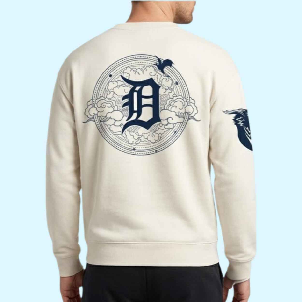 - Back Graphic: A large, intricate circular crest on the back showcasing the team logo surrounded by celestial clouds and dragons.