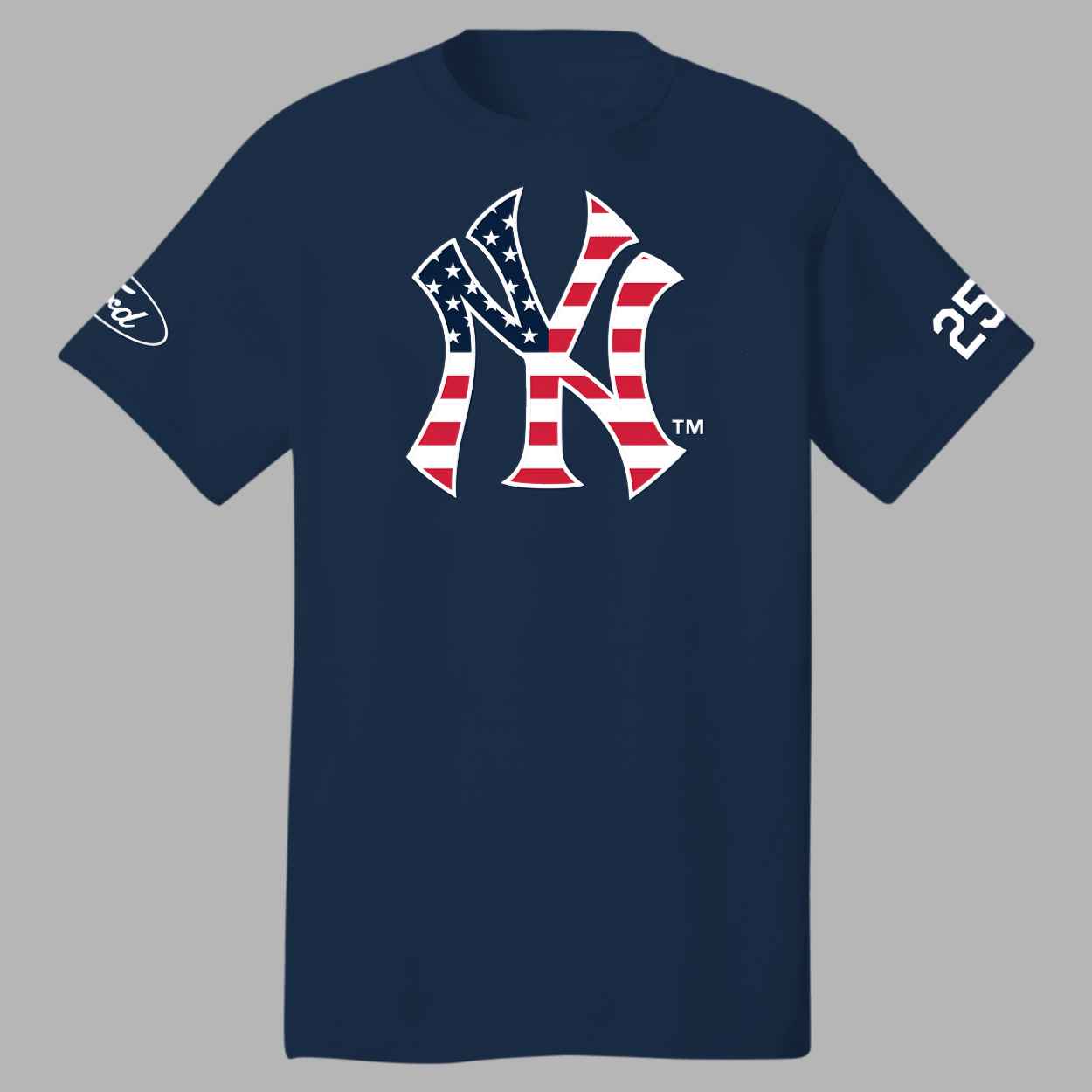 The 2026 Yankees Military Appreciation Night Shirt Giveaway is a meaningful symbol of respect for the armed forces. Centered on a classic navy background, the iconic intertwined “NY” logo is reimagined with a patriotic stars-and-stripes pattern, representing the shared resilience of the team and our military heroes. With the number “25” and a subtle tribute emblem on the sleeves, this garment commemorates the specific spirit of the 2026 season, serving as a unified badge of national pride and local loyalty.