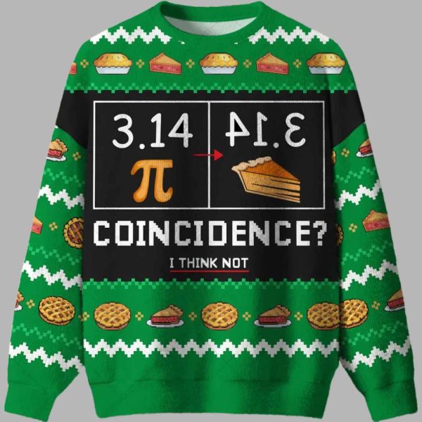 Ready to prove that the universe is mathematically delicious? Celebrate the most famous number in mathematics and its edible counterpart with the brilliant “3.14 PI Coincidence I Think Not Ugly Christmas Sweater.” This is the essential attire for the smart, witty, and hungry individual.