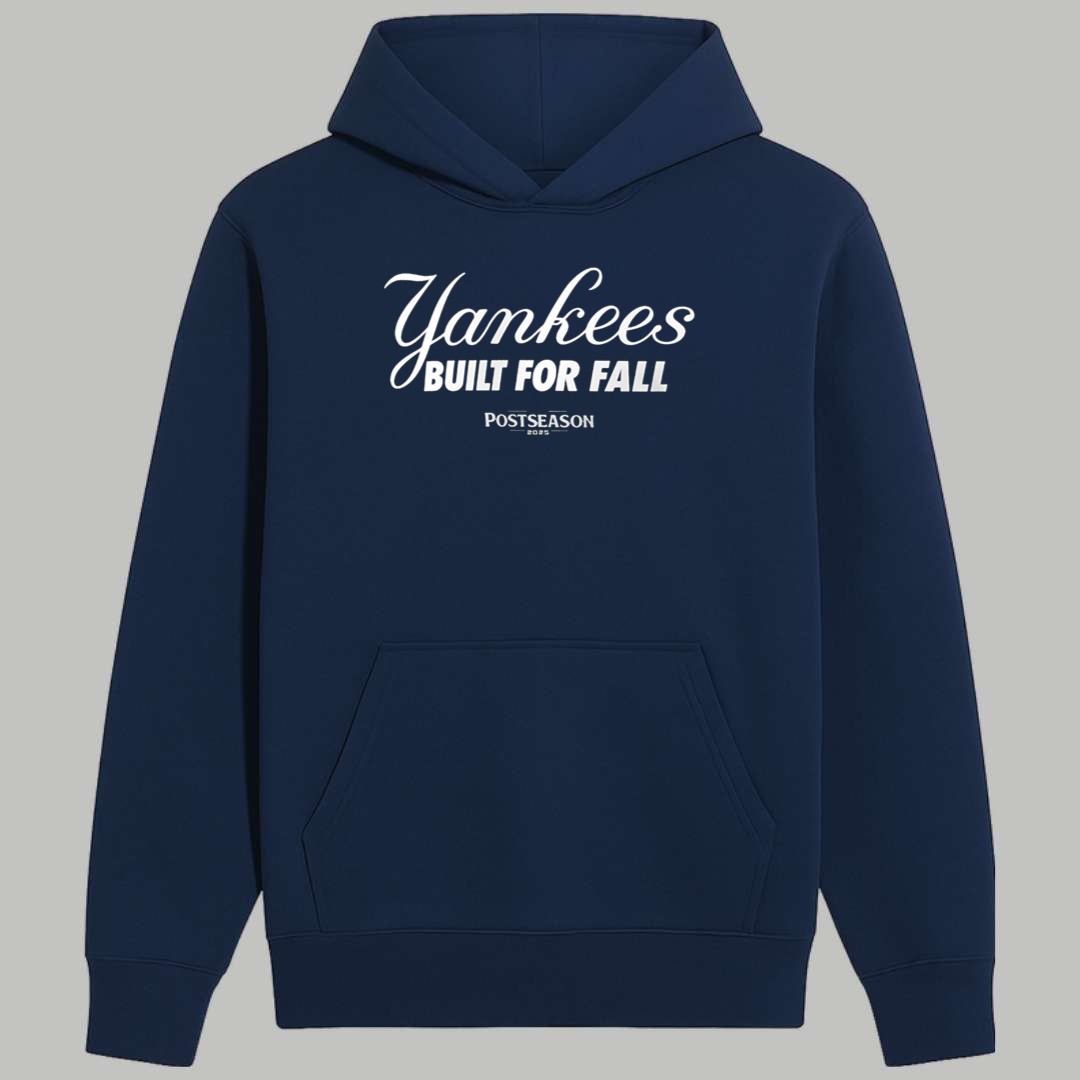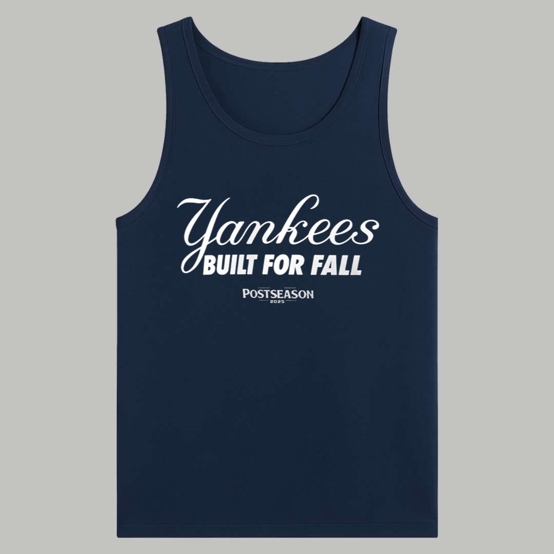 The front of the shirt proudly displays the iconic script “Yankees” logo above the phrase “BUILT FOR FALL,” a clear reference to the team’s relentless mindset during the playoffs. The bold “POSTSEASON 2025” text leaves no doubt about the shirt’s purpose. This shirt serves as a pre-emptive commemorative item, a statement of unwavering belief in the Yankees securing a spot in the 2025 MLB playoffs. It celebrates the profound hope and anticipation of the fan base, acknowledging that the team, anchored by the power of Aaron Judge, is constructed precisely for the high-stakes environment of “October Baseball.” It’s a tribute to the team’s current era of dominance and the belief that the best is yet to come.