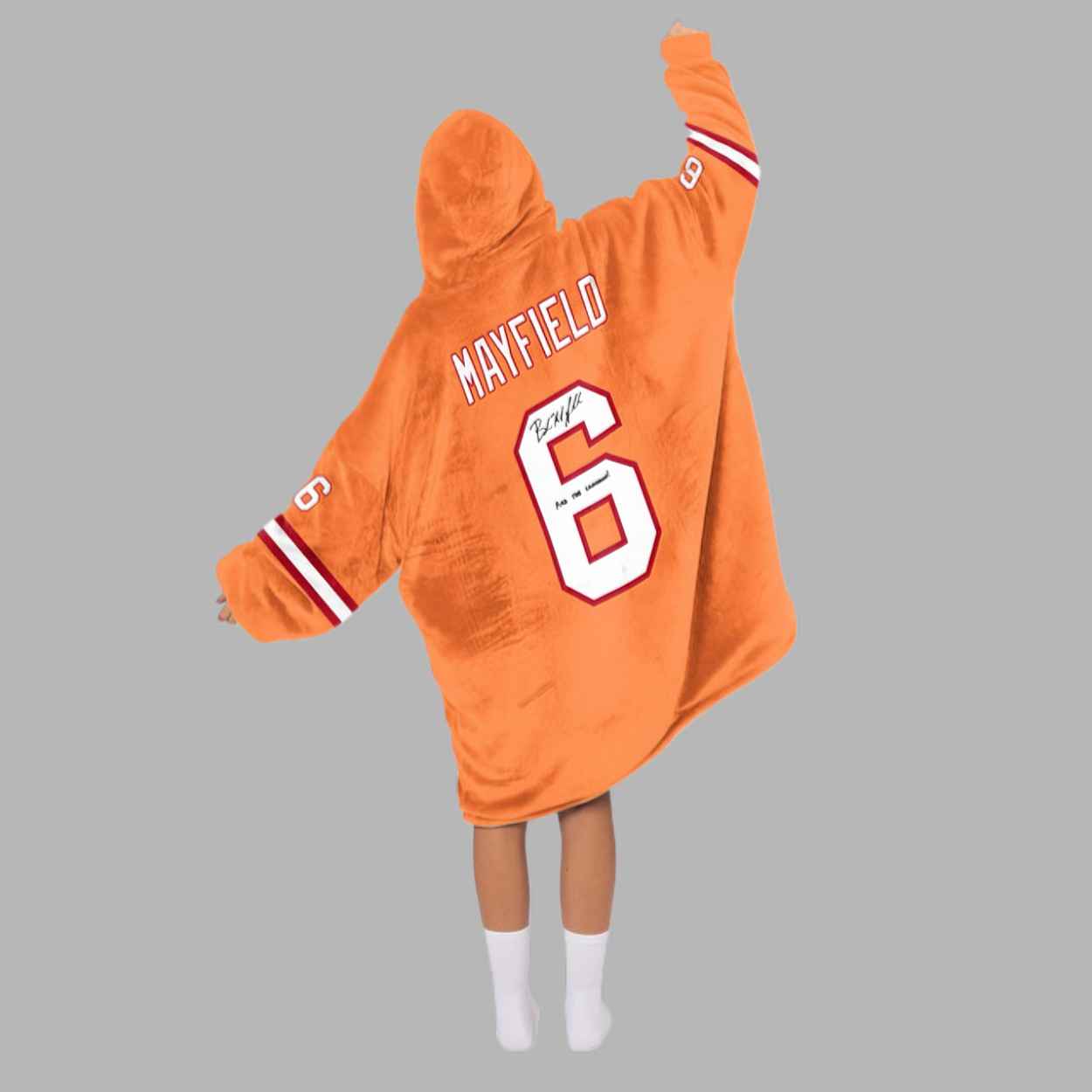 Cozy Up and Cheer Loud with the Baker Mayfield 6 Tampa Bay Football Unisex Blanket Hoodie!