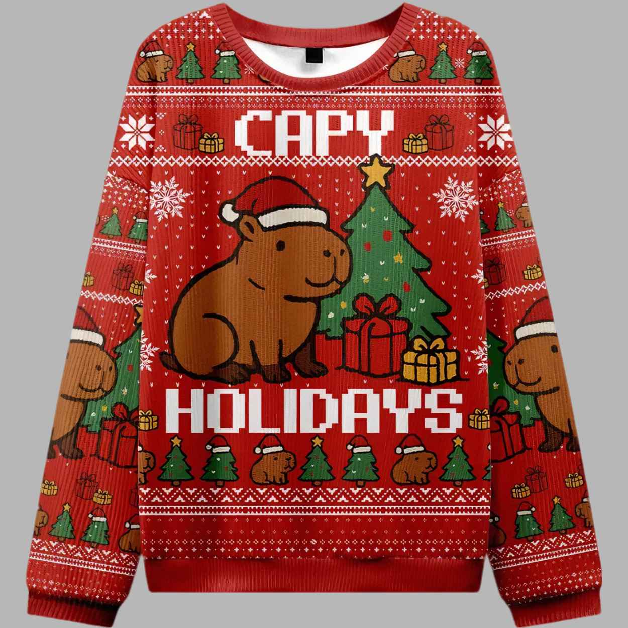 You should acquire this distinct sweater immediately because it’s an absolutely unique and heartwarming conversation starter that guarantees you stand out at any party, offering a wonderfully cute and memorable design that instantly appeals to animal lovers, meme enthusiasts, and anyone seeking a genuinely cheerful and unconventional holiday garment, making it the perfect, unexpected, and truly wholesome gift for the capybara fan in your life or a necessary seasonal addition to your own wardrobe for ensuring a high-vibe, happy, and supremely cozy Christmas season.