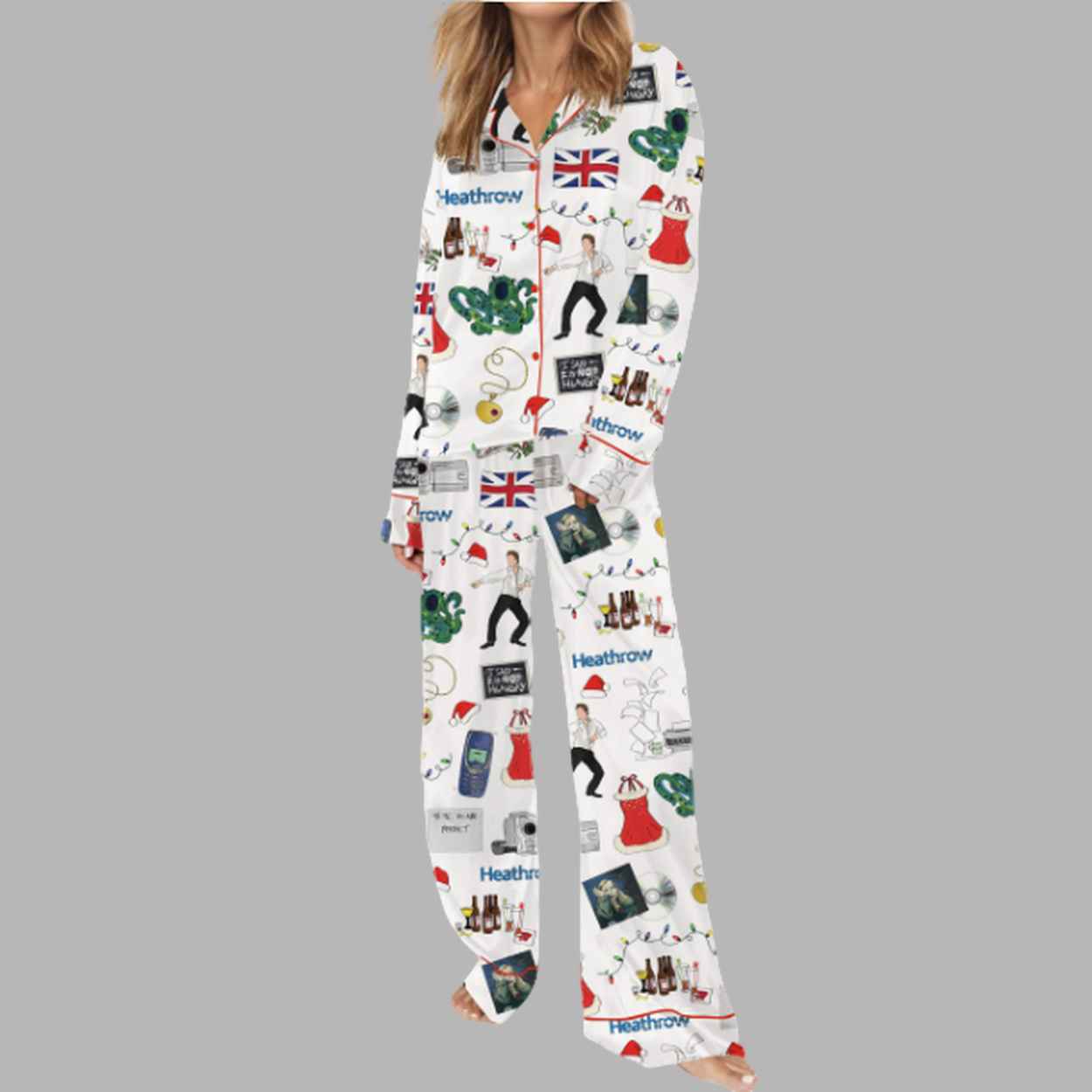 Christmas Love Actually Silky Satin Pajama Set: The Ultimate Sleepwear for the Holidays