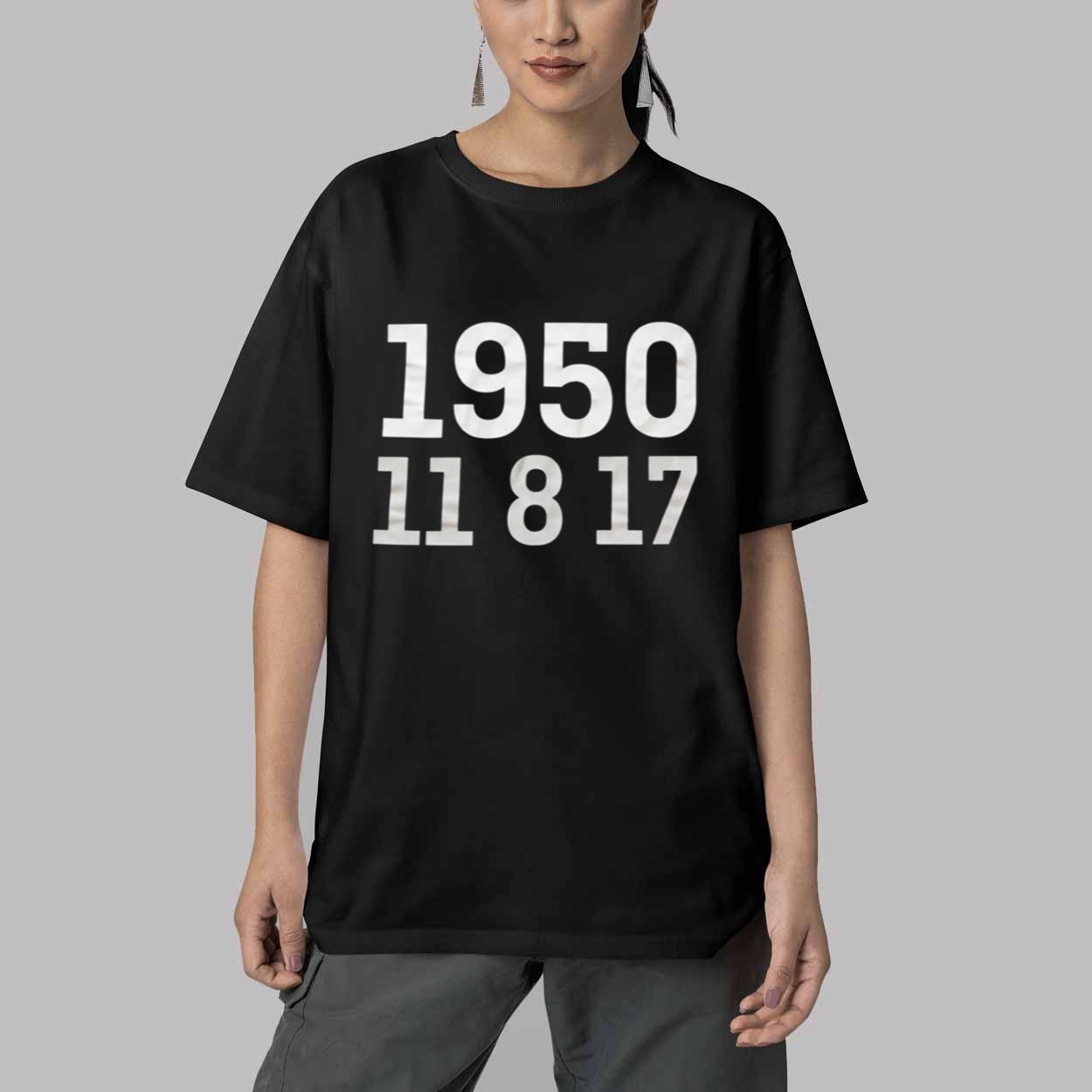 This shirt features a bold, minimalist design that commemorates the historic year 1950, when the color barrier in professional basketball was finally broken. The front is anchored by the year “1950” and the iconic jersey numbers “11 8 17,” while the back proudly displays the names “COOPER CLIFTON LLOYD” in clean, white typography. It serves as a wearable archive of courage and progress, representing the three men who paved the way for future generations and transformed the sport into the diverse global phenomenon it is today.