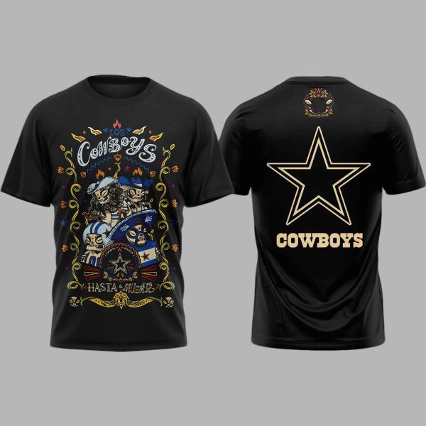 This stunning and intricate t-shirt is a direct and powerful tribute to the fierce, lifelong dedication of the team’s fan base. The front features a highly stylized graphic, drawing inspiration from Dia de los Muertos (Day of the Dead) art. The illustration showcases figures resembling calaveras (skeletons) dressed in team colors and gear, surrounded by ornate, colorful floral patterns and swirls, emphasizing a commitment that lasts “HASTA LA MUERTE” (Until Death). The team name is artistically rendered at the top. The back of the shirt features a bold, classic outline of the iconic team star logo with the word “COWBOYS” beneath it, and a small, colorful calavera graphic at the neck, tying the whole theme together. This garment is far more than just a casual top; it’s a wearable symbol of unwavering loyalty, cultural appreciation, and the depth of passion that defines a true supporter. It’s an ideal way to celebrate your team’s spirit and the diverse, enthusiastic community that rallies behind them, perfect for game days, celebrations, or everyday wear to project a mindset of victory.