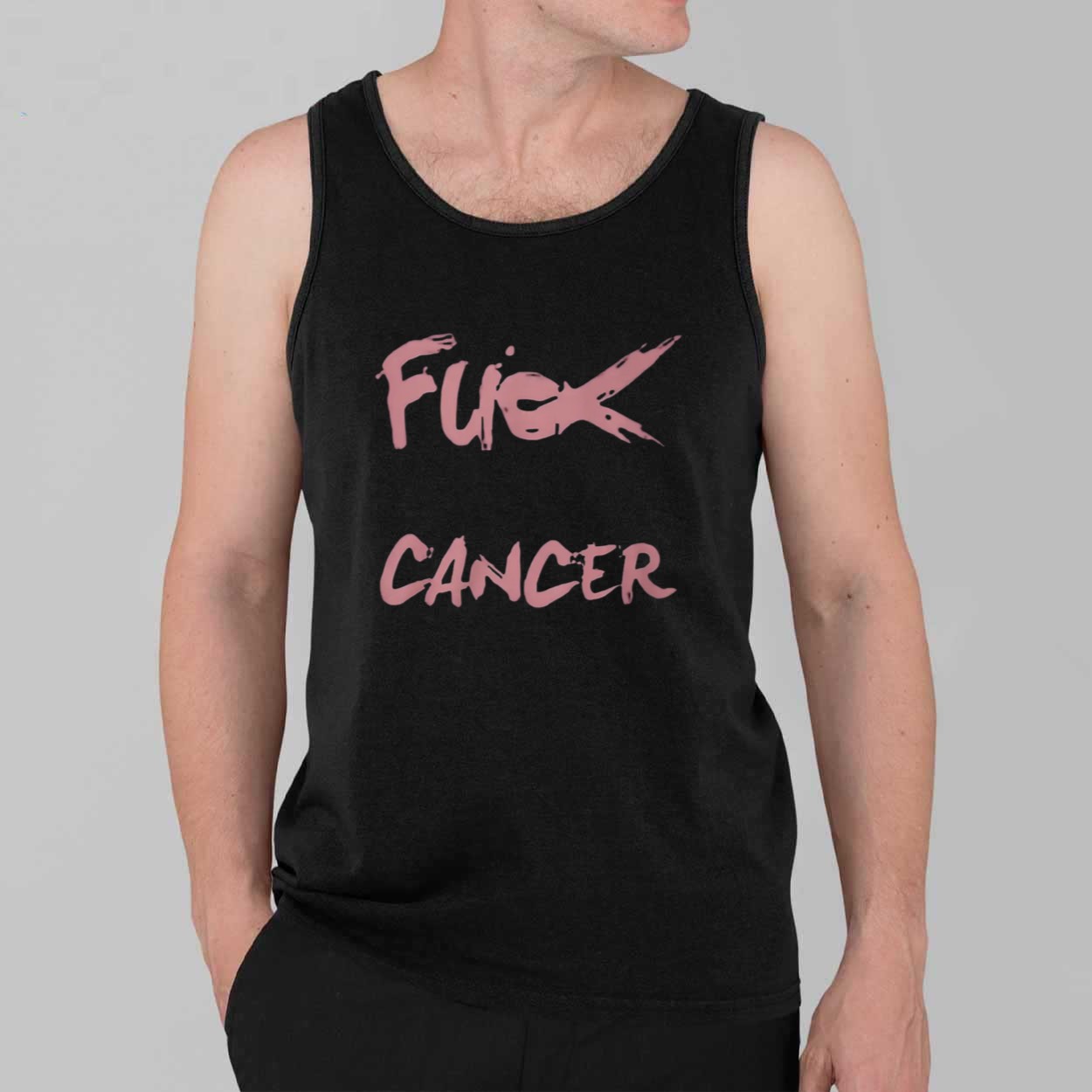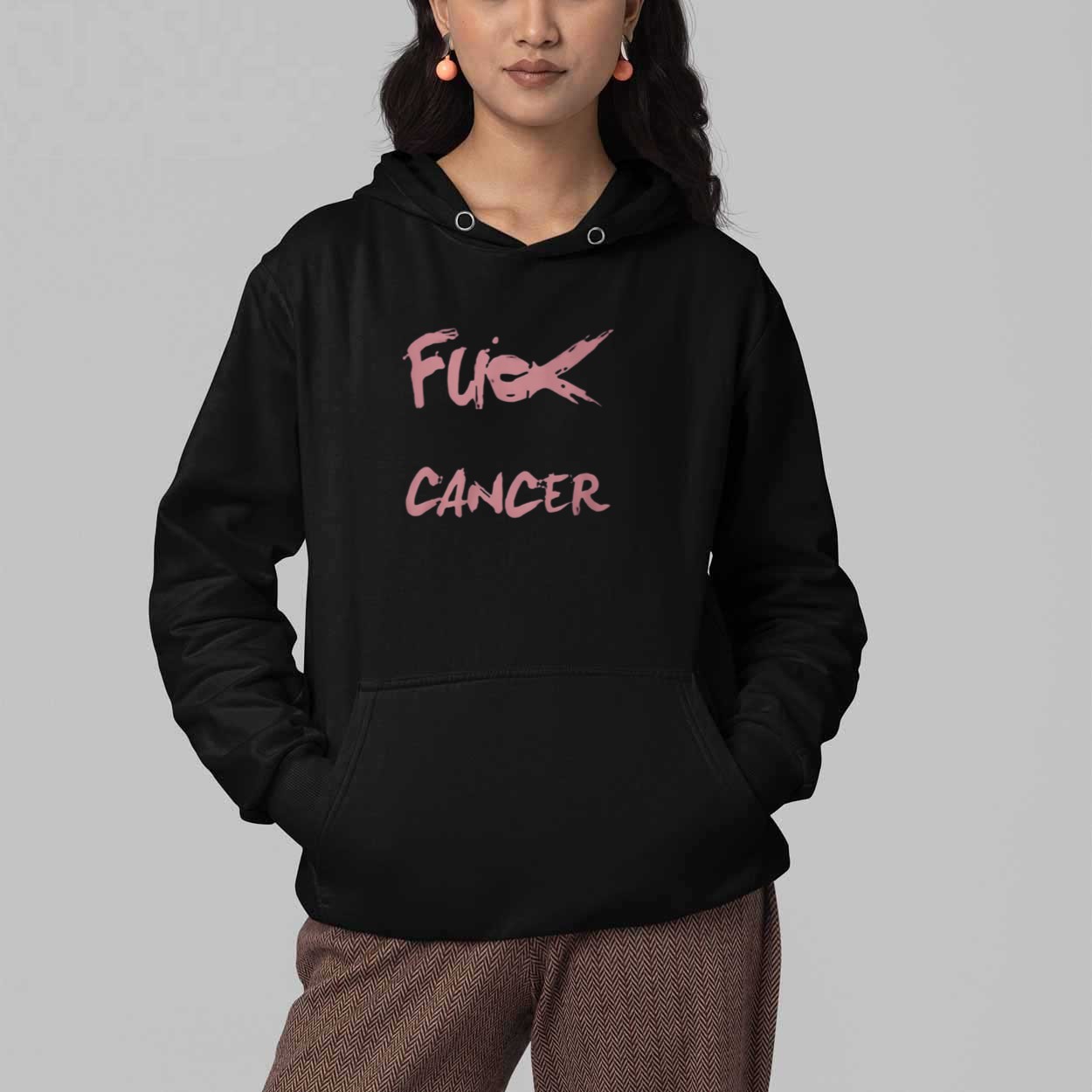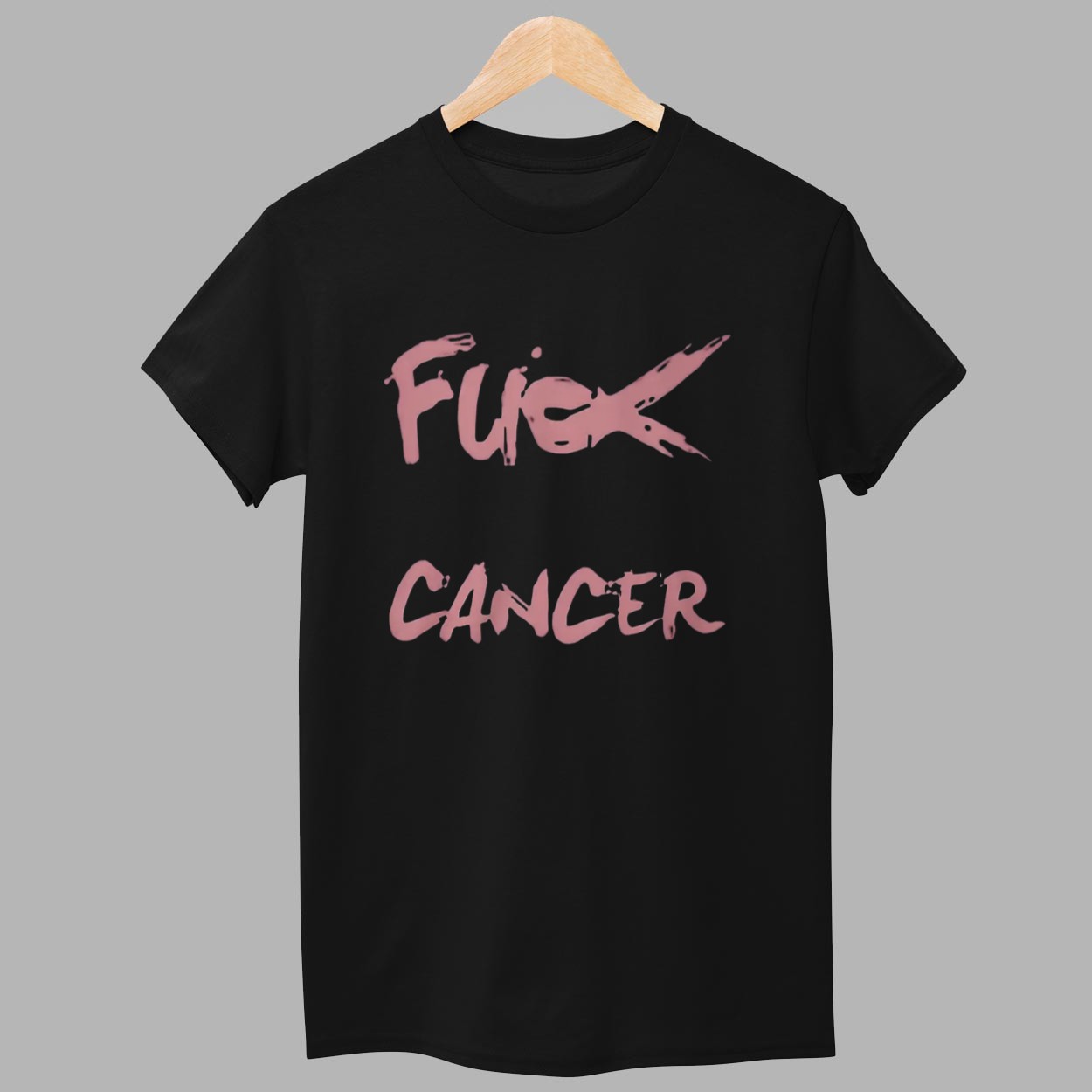 This striking black t-shirt makes a clear, visceral statement. The central text features the phrase “FUCK CANCER” in a bold, brush-stroked pink font. The use of pink is a powerful nod to awareness ribbons, while the aggressive, stylized font conveys an attitude of unflinching resilience and raw emotion.
