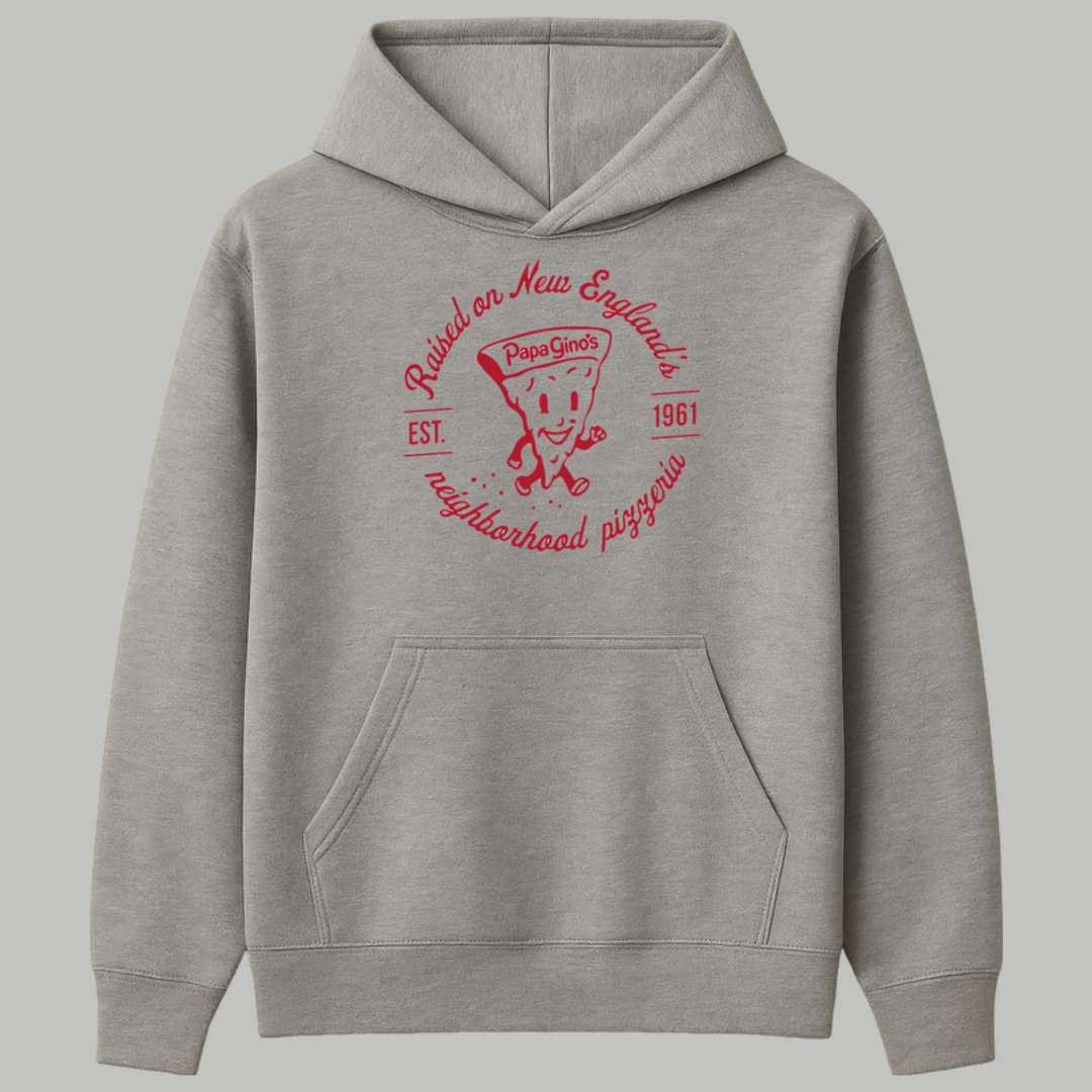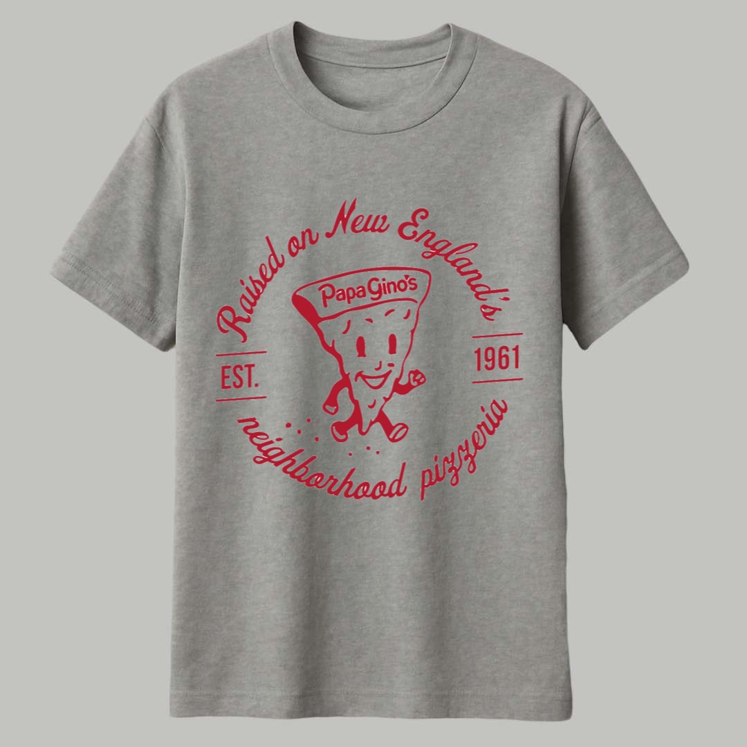 This exclusive Dave Portnoy Raised On Papa Gino’s Shirt is crafted for comfort and striking vintage style. Made from a premium, soft cotton blend, this classic heather grey tee offers a comfortable, casual fit that is perfect for everyday wear. The front features a vibrant, retro-style red graphic in a circular logo design. The bold text proudly states: “Raised on New England’s neighborhood pizzeria” and highlights the original Papa Gino’s mascot and “EST. 1961.” This shirt serves as a commemorative item for the nostalgic connection that Dave Portnoy and countless New Englanders share with the brand. It is a humorous and heartfelt tribute, symbolizing the deep-seated regional pride for a food staple that was a true part of growing up in the area.