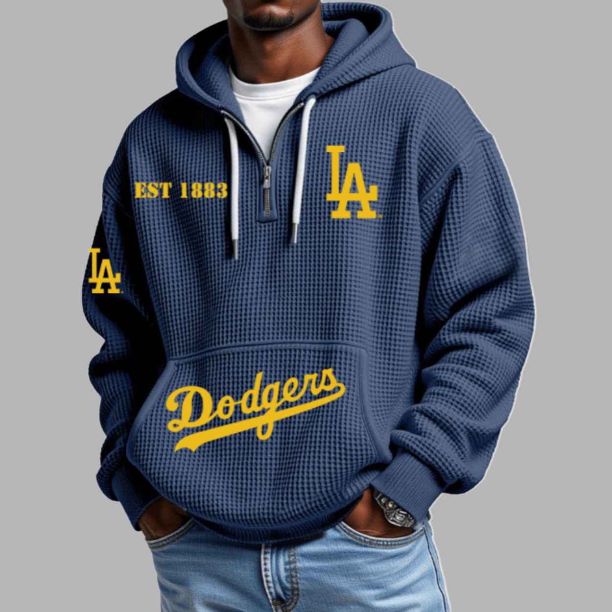 Don’t settle for the ordinary—upgrade your collection with the Dodgers EST 1883 2D Waffle Hoodie. Grab yours today and represent the legacy of 1883 in total comfort!