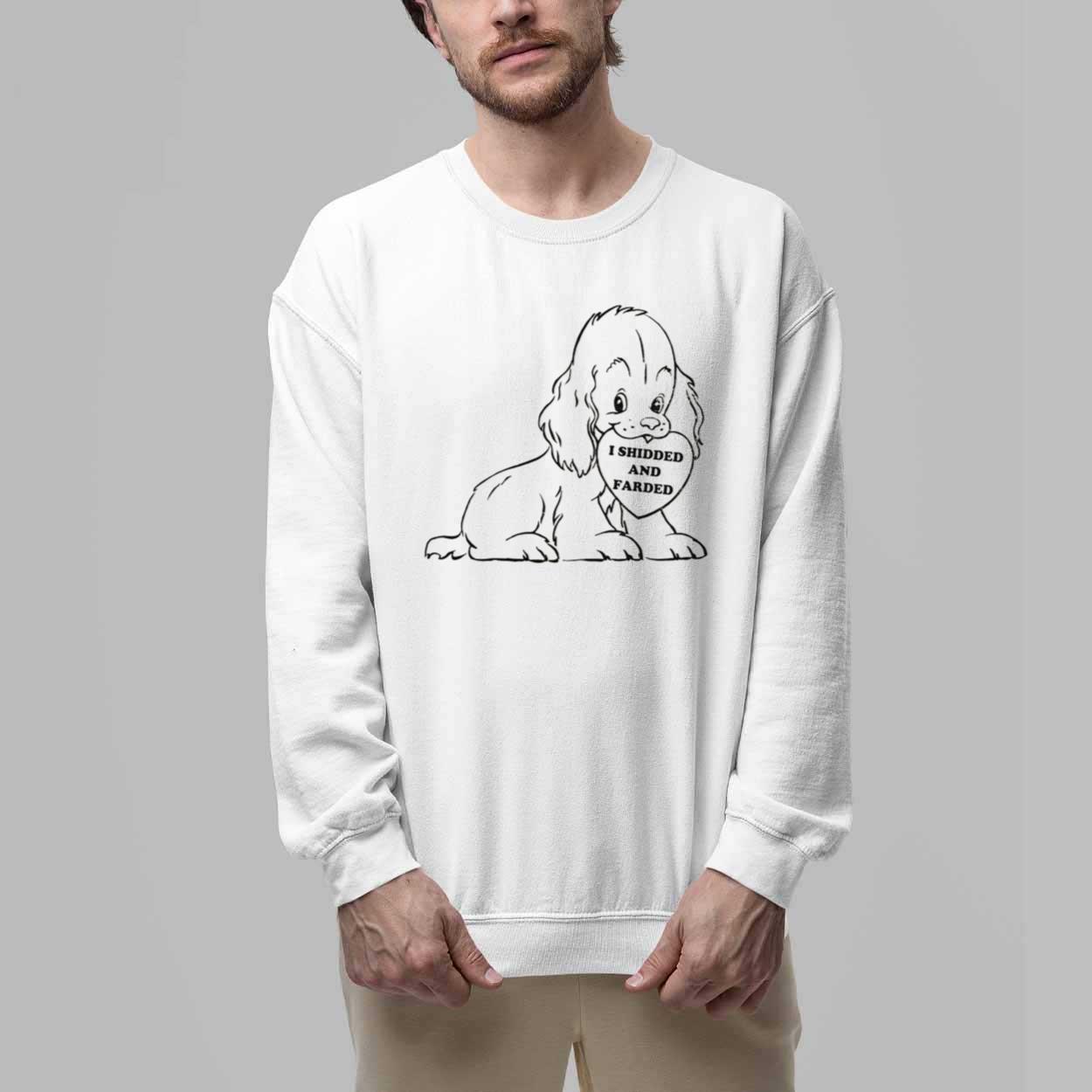 This quality t-shirt features an adorable line art drawing of a Cocker Spaniel puppy holding a heart-shaped sign that reads “I shidded and farded.” The simple design and bold statement create a striking contrast that’s both comical and endearing. Made from soft and comfortable materials, this shirt is perfect for everyday wear. It’s available in a variety of sizes and colors to suit your personal style.