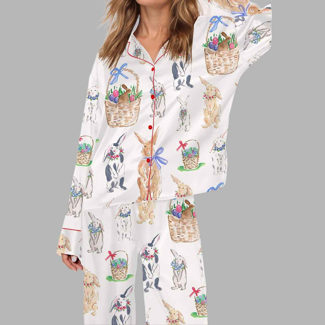 Easter Bunnies Silky Satin Pajama Set: Hop into Comfort and Style