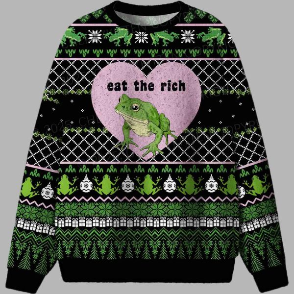 Eat The Rich Frog Ugly Christmas Sweater: Festive, Funny, and Revolutionary