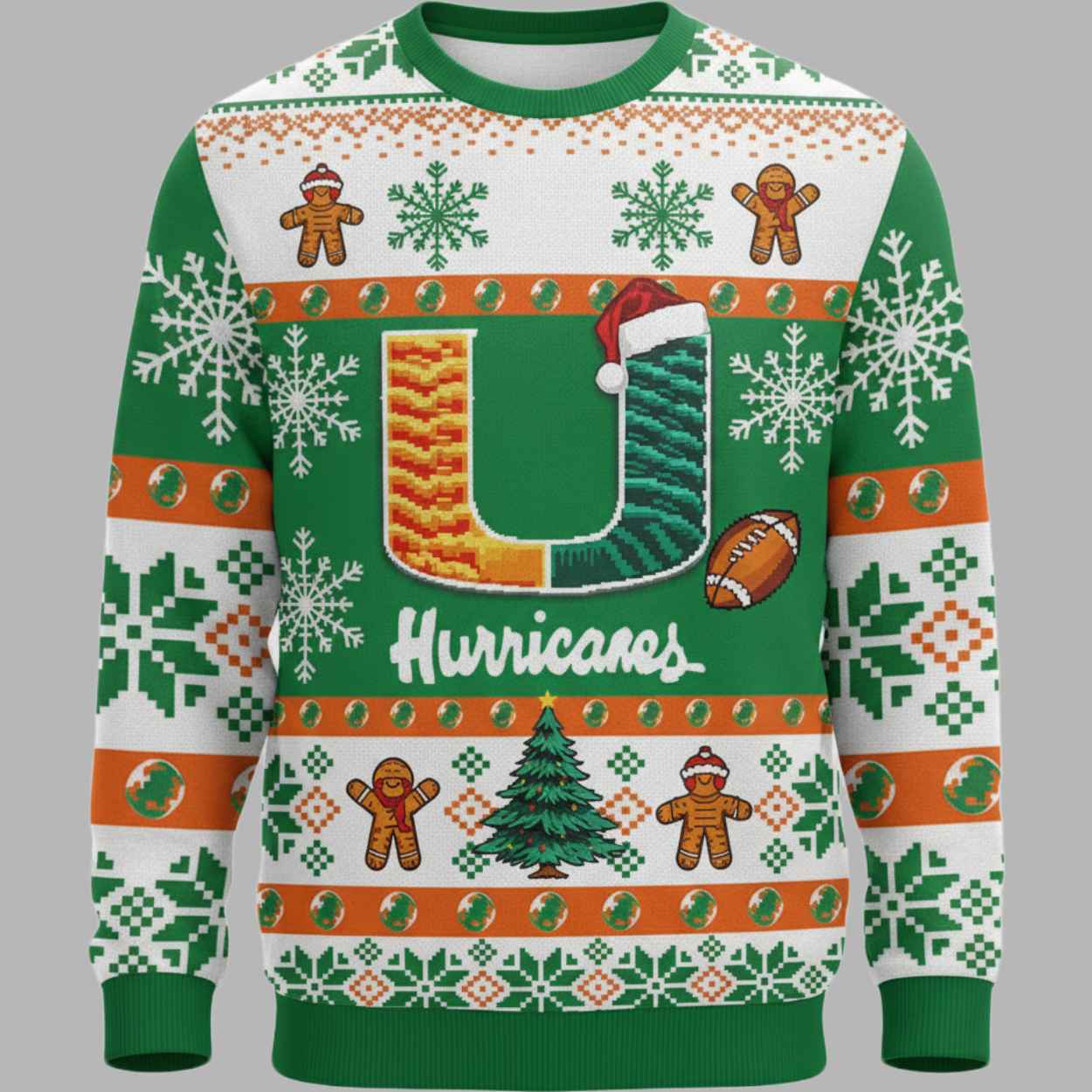 Bring the tropical intensity and iconic spirit of the team to your holiday wardrobe with the spectacular Hurricanes Christmas Ugly Sweater! This is the essential festive gear for passionate fans who want to stay warm, show their colors, and celebrate the season with a unique, spirited twist. Get ready to shout “The U is back!” and “Happy Holidays!” simultaneously.