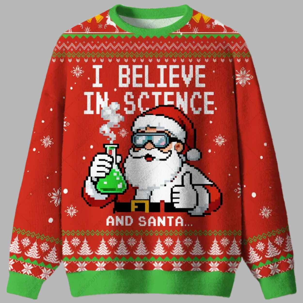 Lab Coat & Lapland: The Witty “I Believe in Science and Santa Ugly Christmas Sweater”