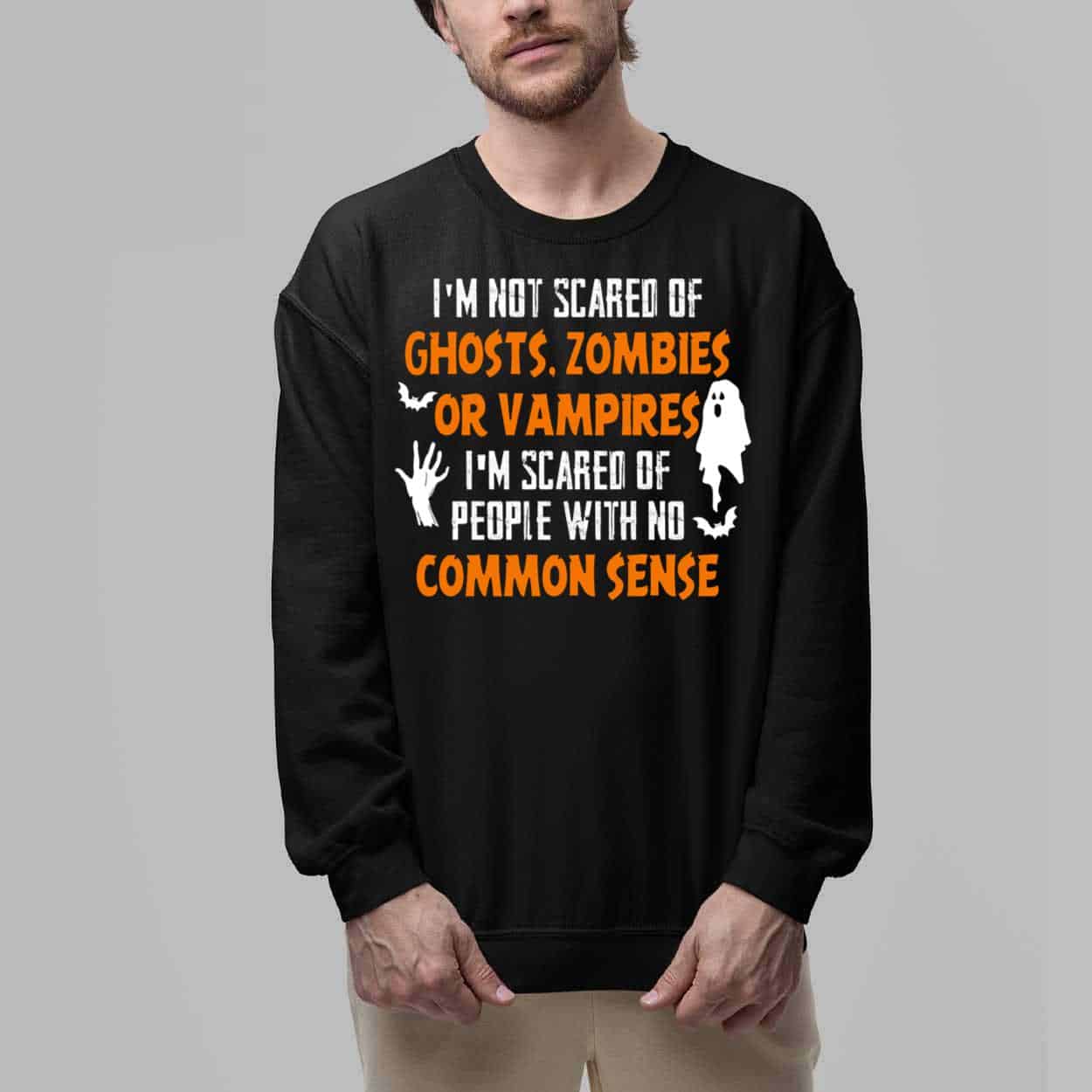 Embrace the spooky season with a touch of humor! This “I’m Not Scared Of Ghosts Zombies Or Vampires T-Shirt” is the perfect way to express your Halloween spirit while showcasing your wit. It’s a conversation starter that’s sure to resonate with anyone who values common sense over supernatural scares.