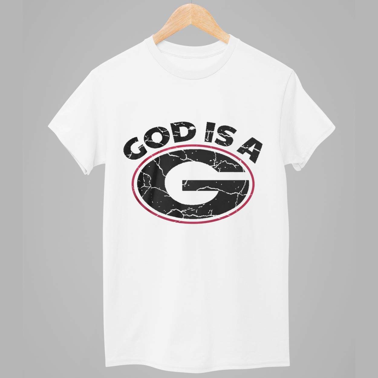 This striking white t-shirt makes a clear, unforgettable statement. The design features the phrase “GOD IS A” arcing over a large, iconic “G” logo encased in an oval border. The “G” itself is rendered with a distressed, cracked texture, giving it a gritty, tough aesthetic. The meaning of this design is deeply rooted in shared community culture and symbolic confidence. It transforms the shirt into a wearable commitment that combines spiritual belief with team identity. The phrase, often used to express supreme acknowledgment, is brilliantly paired with the iconic letter, signifying that the team’s spirit, resilience, and success are divinely inspired or, at the very least, truly great.