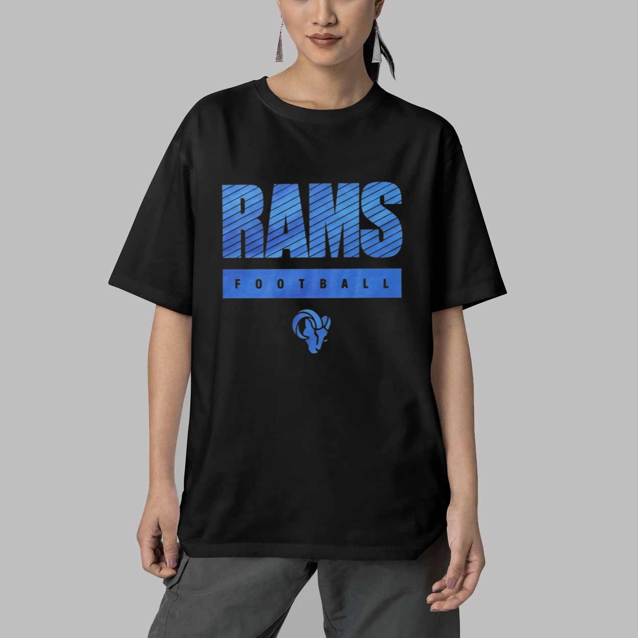 This shirt is an essential addition to your collection because its sharp high-contrast palette and modern athletic typography offer a sophisticated look that stands out in the stands or across the city while making a powerful statement of team loyalty. Its unique integration of specialized gradient artistry with the legendary ram head logo ensures you represent your pride with a fresh and purposeful flair, providing a versatile and comfortable piece that transitions perfectly from a high-energy game day to a casual weekend outing, allowing you to carry the strength of the franchise and the spirit of a true playmaker in one premium commemorative garment.