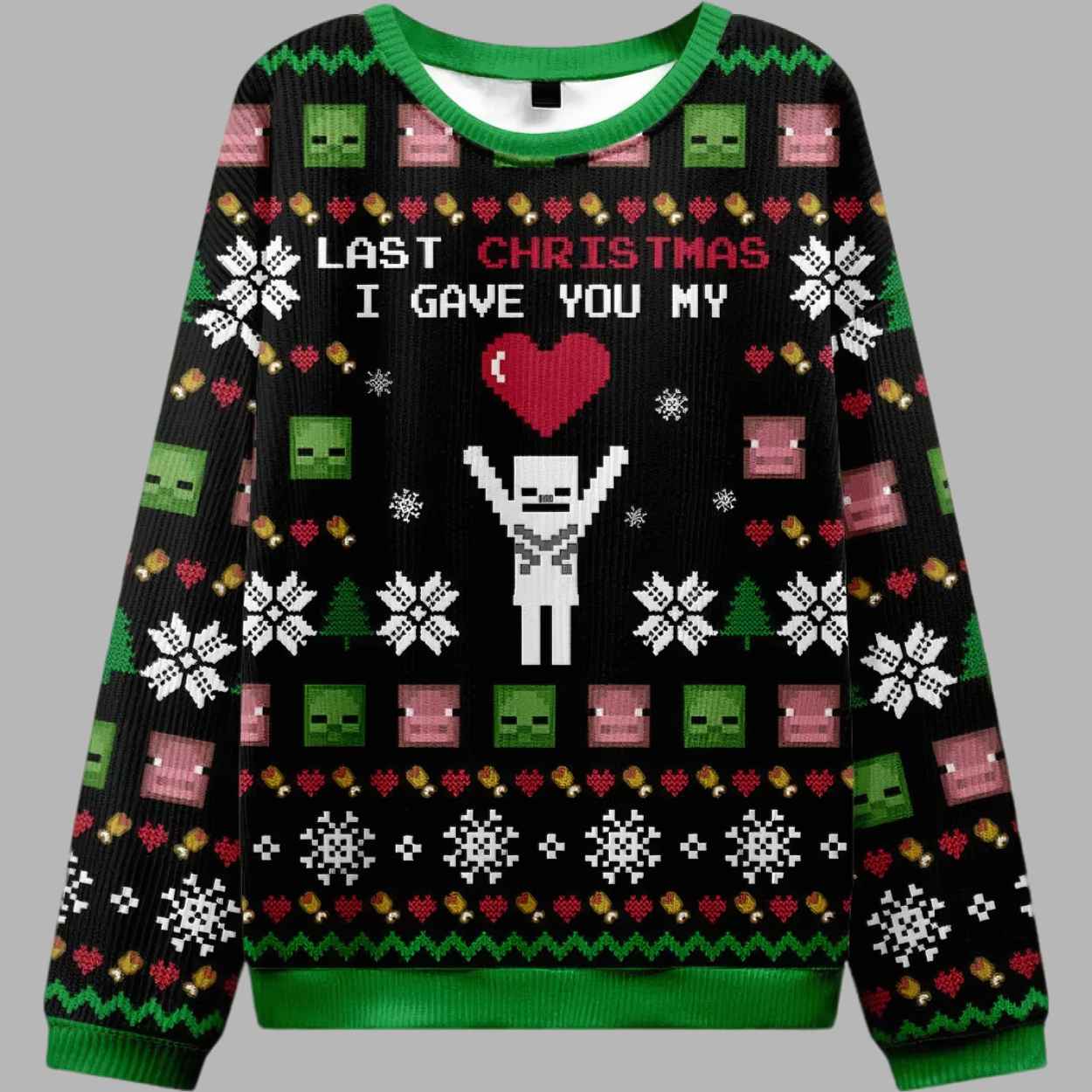 The Last Christmas I Give You My World Black Ugly Christmas Sweater: A Must-Have for Every Minecraft Enthusiast