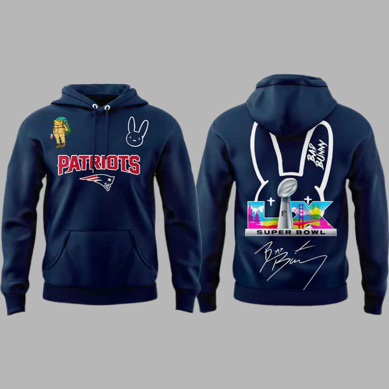 The road to the title has never looked this good. Secure your NE Patriots x Bad Bunny SB LX 2026 Combo Hoodie today and wear your pride with a look that defines the era!