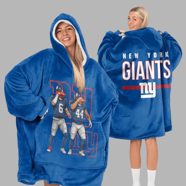This one-of-a-kind garment ingeniously blends the iconic look of a football jersey with the expansive, plush feel of a blanket, designed to be worn comfortably by any fan. It features the team’s signature royal blue color, a deep and rich hue that instantly signals loyalty. The front showcases dynamic, stylized graphics of two players in action, complete with glowing red visor eyes, standing over a large, faded team logo. The back provides a clear display of team pride, featuring “NEW YORK GIANTS” and the team’s distinctive “NY” logo. The hoodie is constructed with an oversized fit, an incredibly soft, sherpa-lined hood, and a large front pocket, prioritizing warmth and utility. This blanket hoodie is more than mere loungewear; it’s a wearable symbol of enduring, passionate team pride. Its meaning lies in celebrating the team’s historic grit, tough defense, and big-city determination. Wearing this piece signifies unwavering support through every season and a recognition of the fierce, fighting spirit of the squad. It’s the perfect way to wrap yourself in the spirit of the team, feeling both warm and powerfully connected to the fandom.