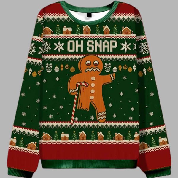 Ready to deliver the perfect holiday punchline? Inject some hilarious, self-aware humor into your festive wardrobe with the brilliantly witty “Oh Snap Ugly Christmas Sweater.” This is the ideal garment for anyone who knows the gingerbread man’s biggest fear!