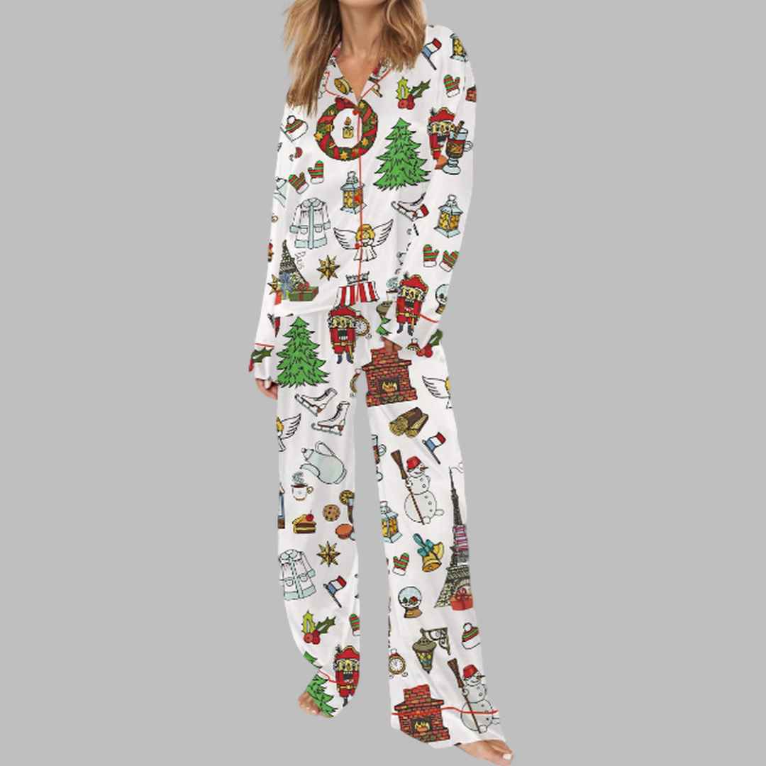 Paris Christmas Satin Pajama Set: Indulge in Parisian Elegance This Holiday Season
