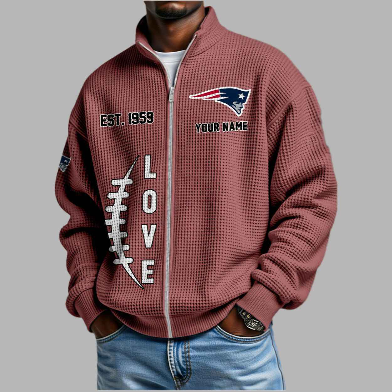 Honor the journey since 1959 and step out with unmatched confidence and class. Get your Patriots EST 1959 Waffle Half Zip Sweatshirt today!