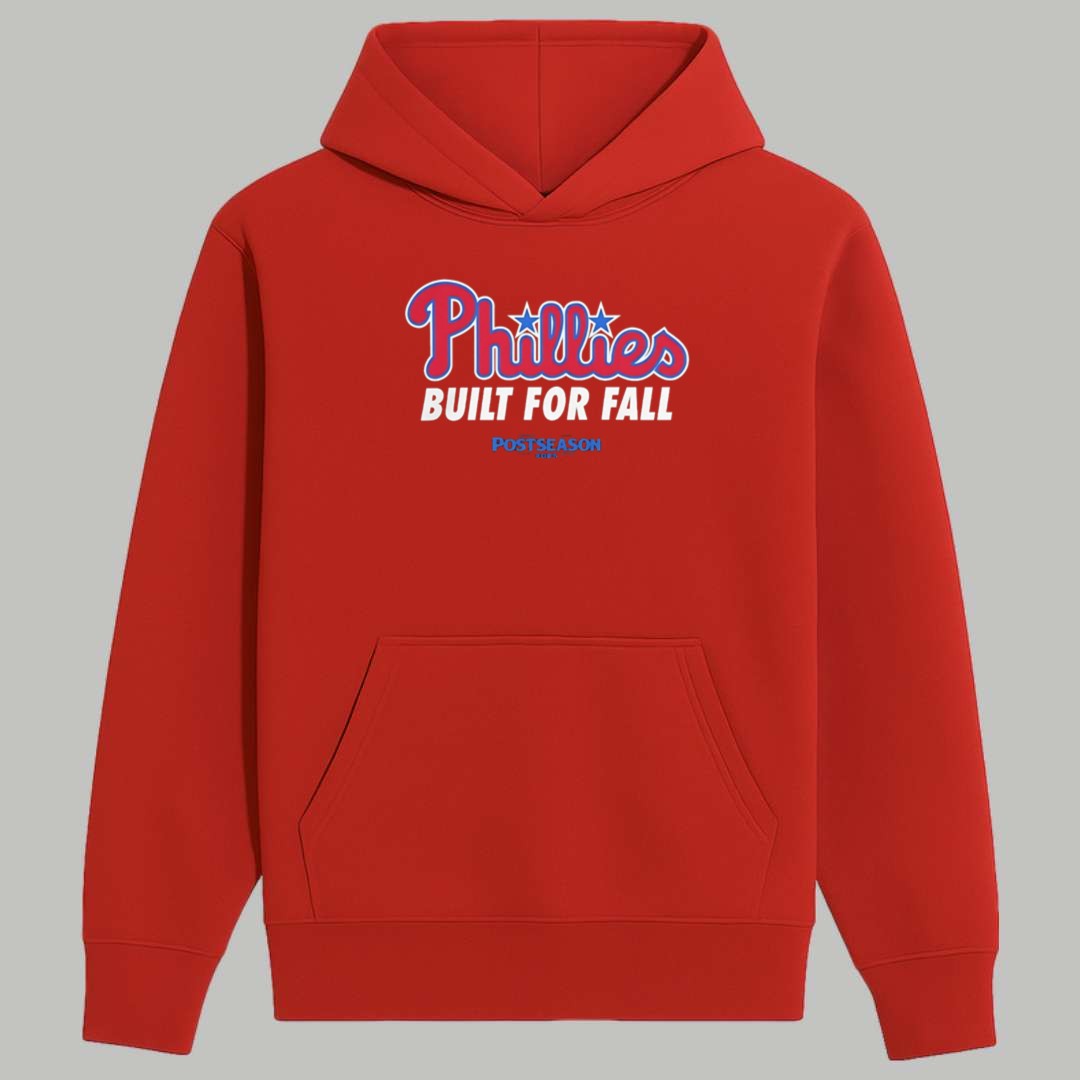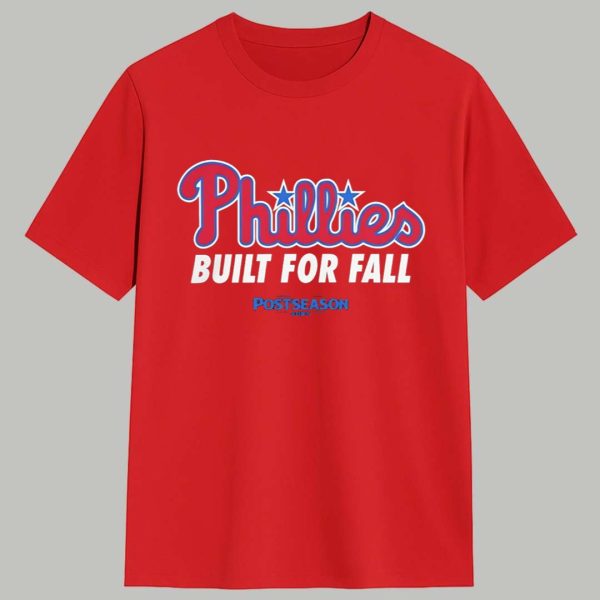 This exclusive Phillies Built For Fall Postseason 2025 Shirt is crafted for comfort and a striking visual impact. Made from a premium, soft cotton blend, this classic red tee offers a comfortable, casual fit that is perfect for game day or everyday wear. The front proudly displays the iconic Phillies script logo above the bold, white text “BUILT FOR FALL,” with the phrase “POSTSEASON 2025” featured below. This shirt serves as a pre-emptive commemorative item, a statement of the fan base’s profound belief that the team is specifically constructed to dominate the high-pressure environment of the playoffs. It’s a bold declaration that the team’s destiny lies in “Red October” of the 2025 season.