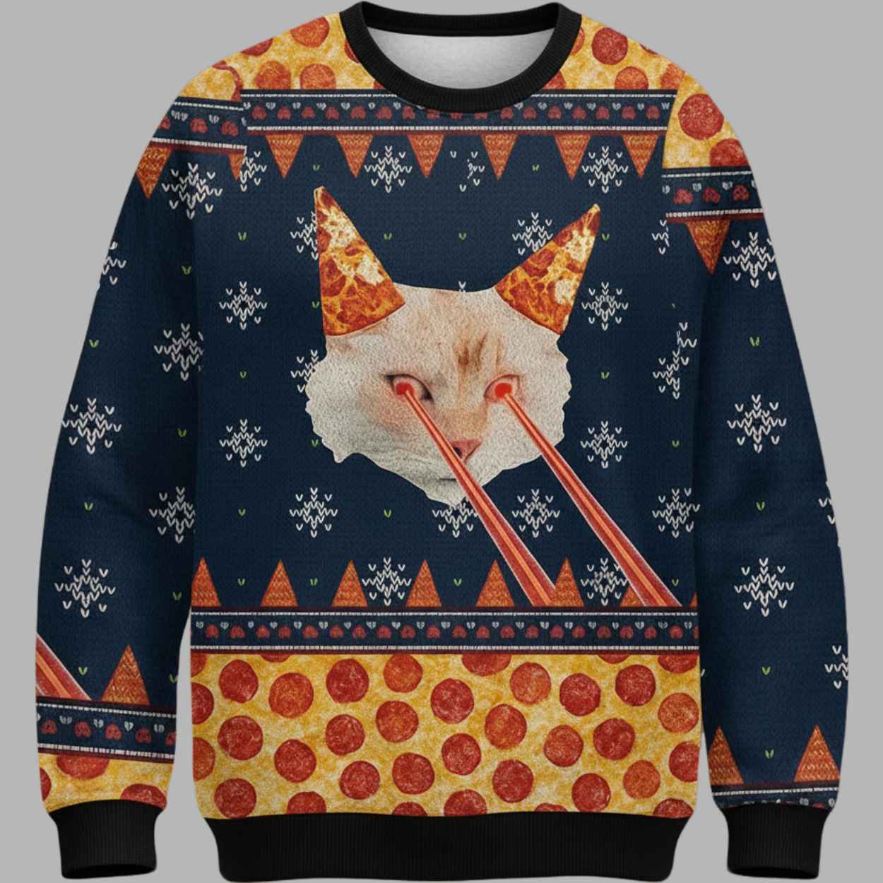Pizza Cat With Laser Eyes Christmas Ugly Sweater: Maximum Meme Power!