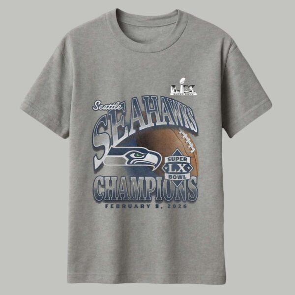 The Seahawks Historic Win S Bowl LX Champions Shirt features a classic heather grey base that highlights a vintage-inspired graphic of the iconic hawk logo and a football, set against a backdrop of bold team lettering. This design represents the grit, determination, and legendary status of the team, prominently displaying the historic date of February 8, 2026. It serves as a timeless tribute to the players and the “12th Man” community, symbolizing the unity and passion that carried the franchise to its latest championship triumph.