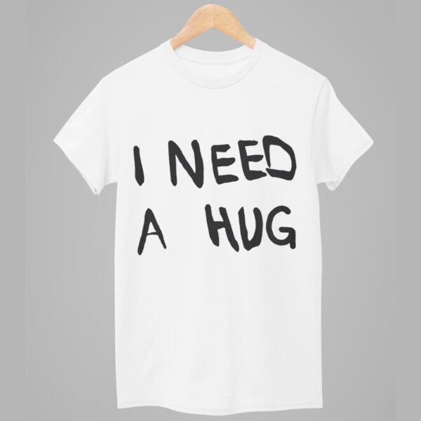This shirt features a minimalist, high-contrast design that focuses on the core message of emotional honesty and support. The front is anchored by the bold, handwritten-style “I NEED A HUG” typography in black against a clean white canvas, mirroring a viral and relatable moment from one of the game’s most dynamic personalities. It serves as a wearable reminder that everyone deserves a moment of kindness, representing the vulnerability and shared humanity that exists even within the most intense competitive environments.