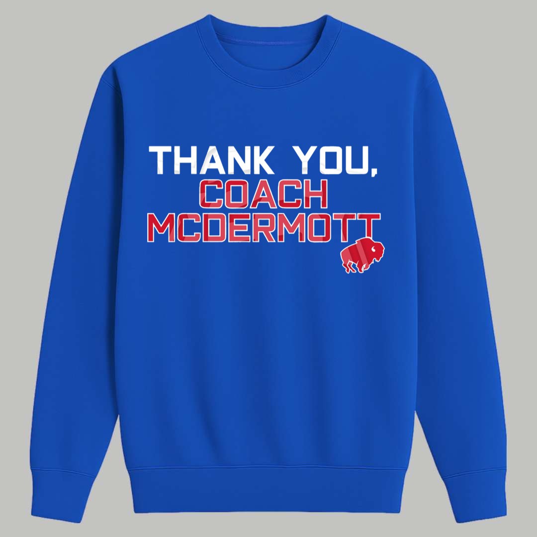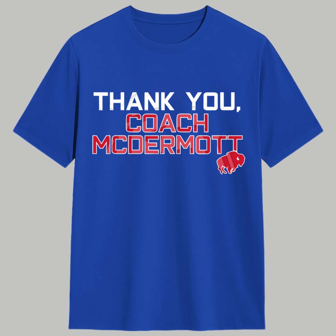 Express your deep appreciation for a transformative era of leadership with the heartfelt Thank You Coach Mcdermott Bills Shirt.