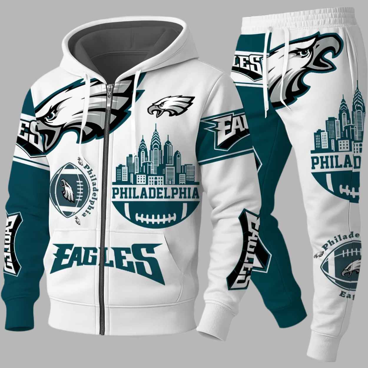 Showcase your soaring team spirit and represent the city of brotherly love with the dynamic Unisex Eagles Printed Bold Zip Hoodie Set.