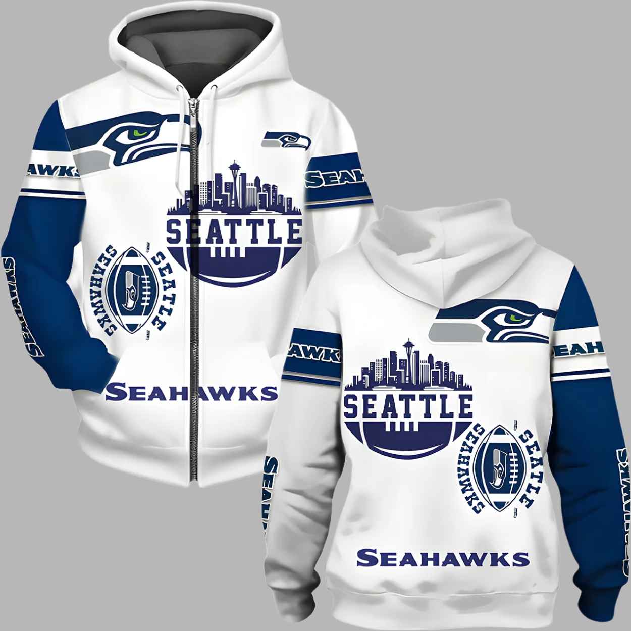Unisex Seahawks Printed Bold Zip Hoodie Set: Pacific Pride