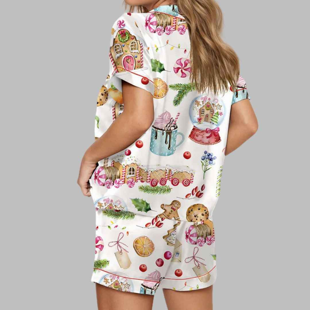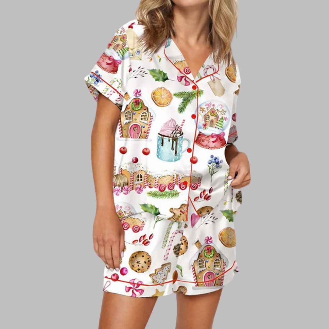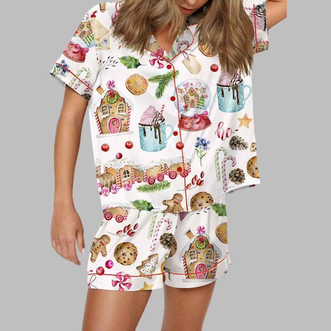 Cozy Up This Holiday Season with the Watercolor Christmas Gingerbreads Satin Pajama Set