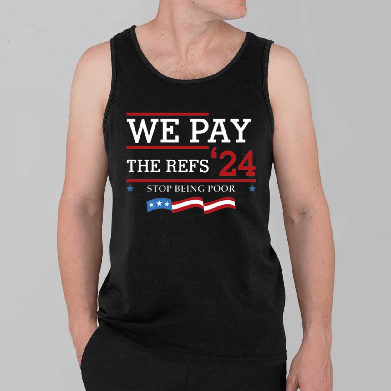 Don’t miss out on the opportunity to own this impactful “We Pay The Refs 24 Stop Being Poor Shirt”. It’s the perfect way to express your views and show your support. Order yours today and make a statement!