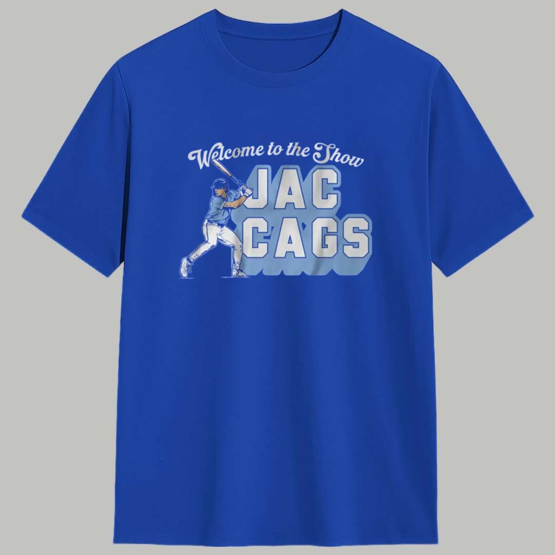 Are you ready to celebrate the arrival of a talented new player and show your immediate support for his journey to the major leagues? This Welcome To The Show Jac Cags Shirt is the perfect way to commemorate that exciting debut moment. It’s the ultimate fan gear for those who recognize rising talent and want to wear their team pride with style.