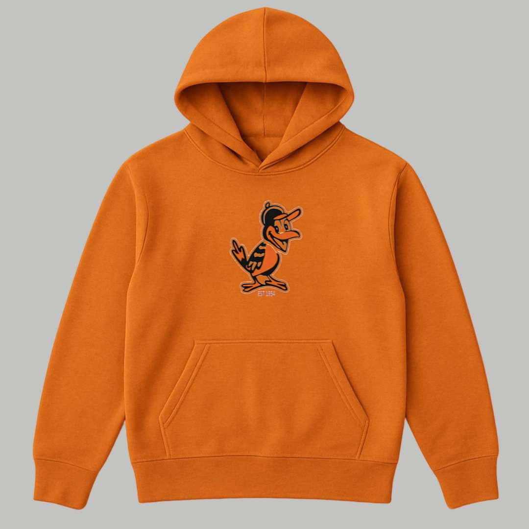 - Retro Mascot Graphic: Features the iconic “Smiling Bird” mascot rendered in a classic vintage style.